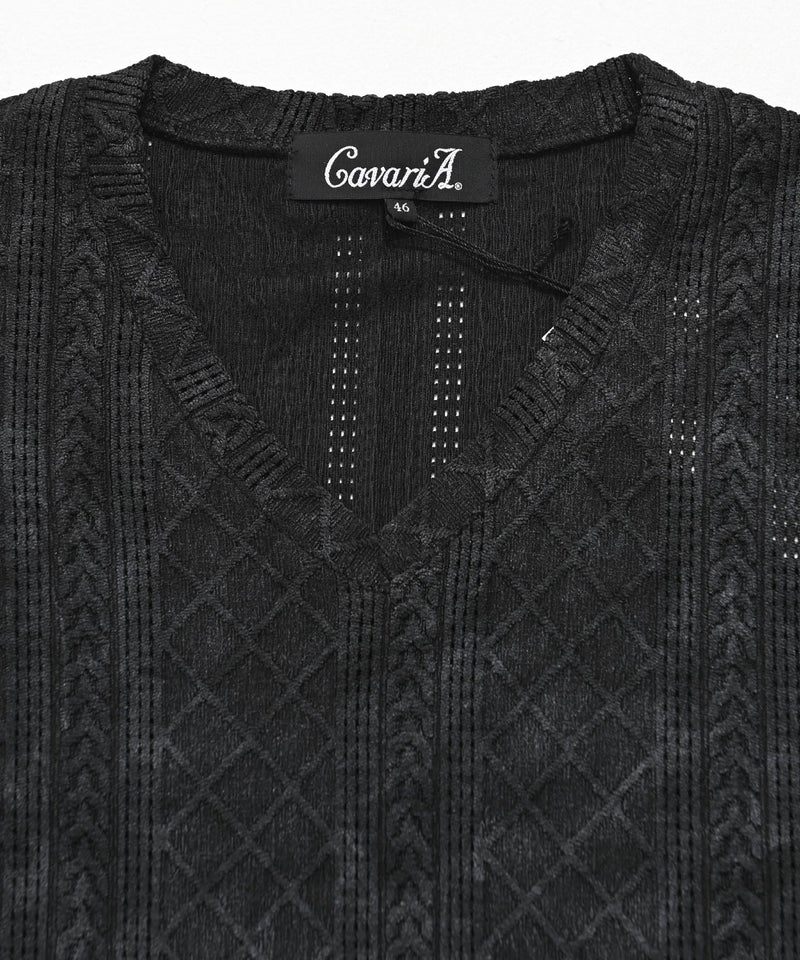 BITTER STORE(ビターストア)にCavariA【キャバリア】汚し加工格子ケーブル半袖VネックTEEが入荷しました。