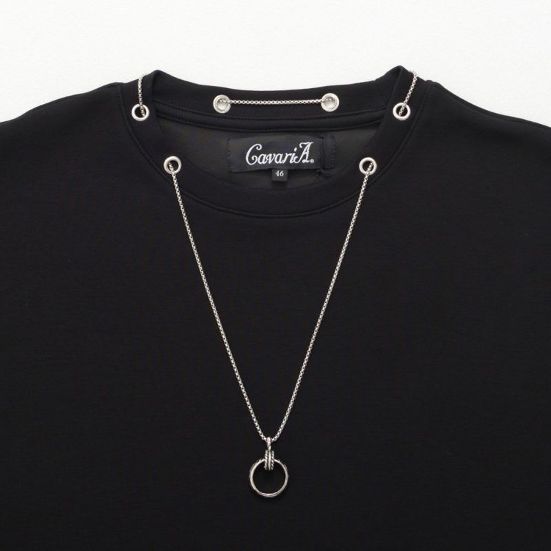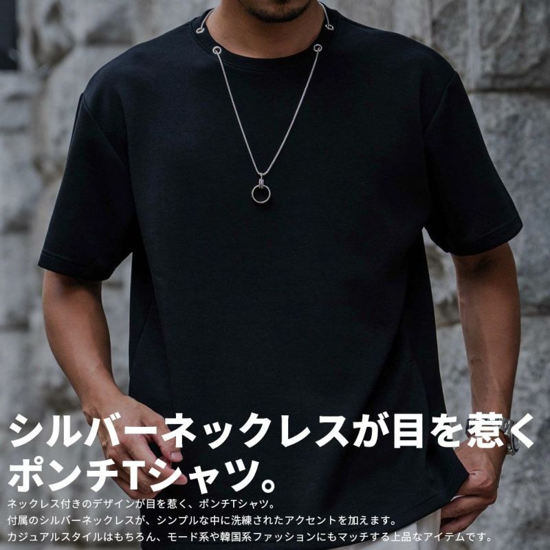 ネックレス付きのデザインが目を惹く、ポンチTシャツ。カジュアルスタイルはもちろん、モード系や韓国系ファッションにもマッチする上品なアイテムです。 CavariA(キャバリア)ネックレス付きポンチ半袖TEE/全2色