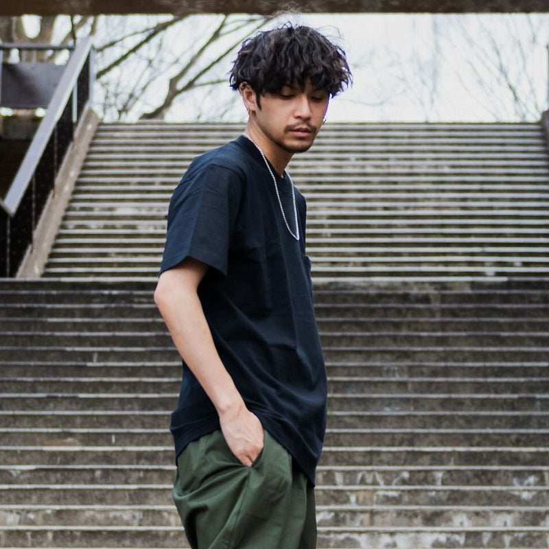 ヘビーウェイト(肉厚)のコットン100%生地を使用し洗えば洗うほど肌に馴染み、洗いこんでも首周りが伸びにくく型崩れしない強さと耐久性があります。