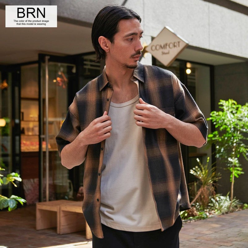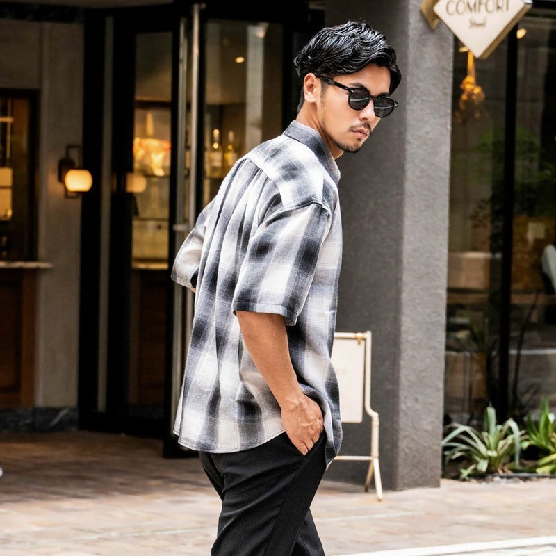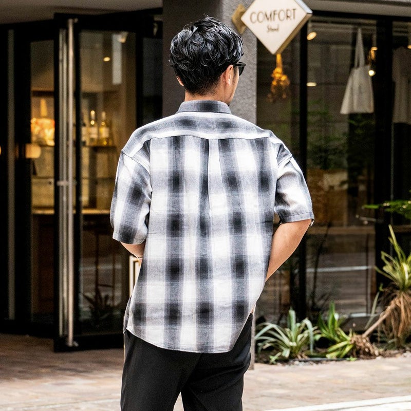 独特なグラデーションが魅力のオンブレーチェックが印象的な半袖シャツ。