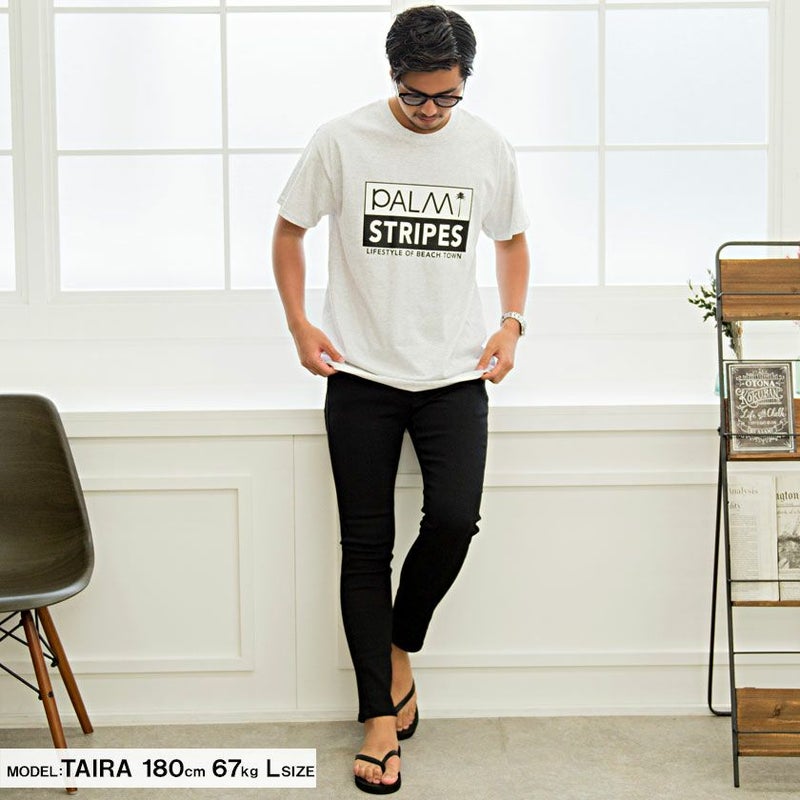 暑い日でも涼しくおしゃれに!シンプルで着心地抜群の半袖Tシャツ。 【SALE/セール】PALM/STRIPES(パームストライプス)ヤシの木ロゴプリントTシャツ/全1色