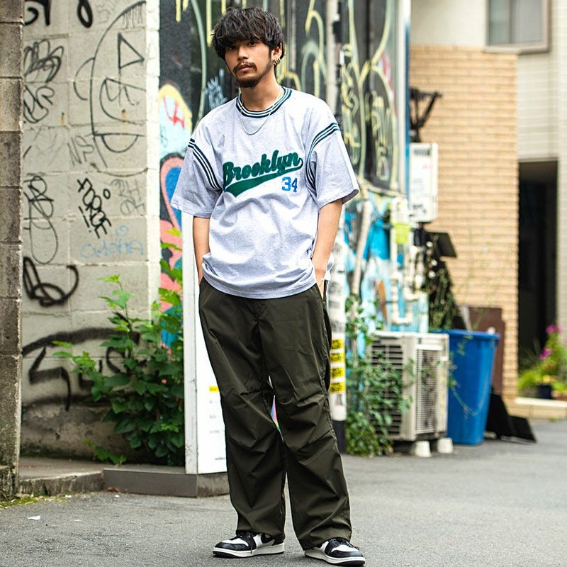 シェフパンツ、ワイドパンツ、カーゴパンツ、ショートパンツと合わせて今風に。