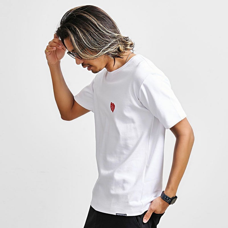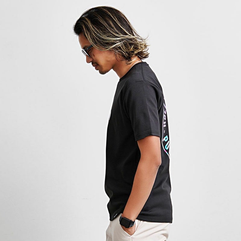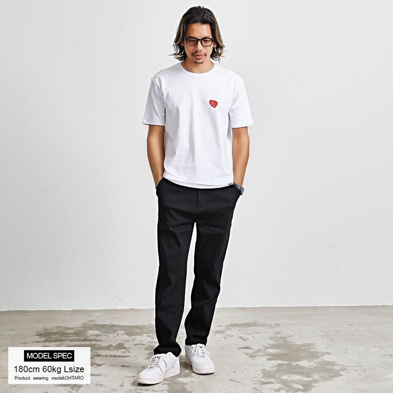 定番のクルーネックTシャツをベースに、ストリート感のあるポップなアクセントを効かせた、個性際立つ一枚です。