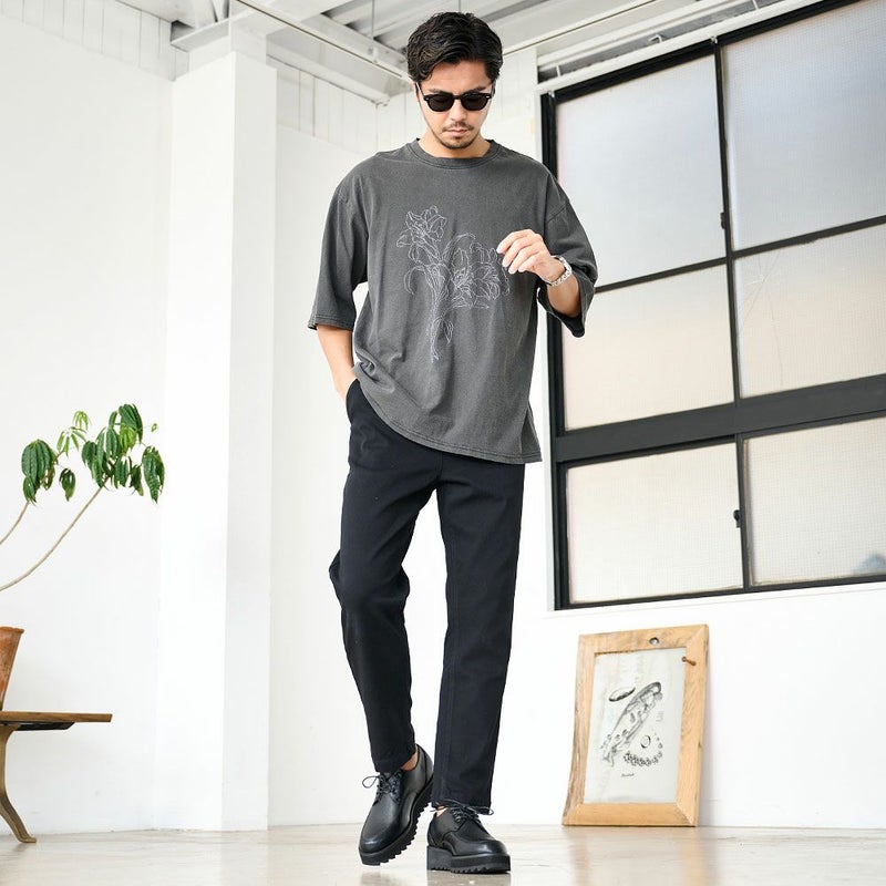 ピグメント加工とウォッシュ加工によって、まるで古着のような味わい深い風合いを再現。