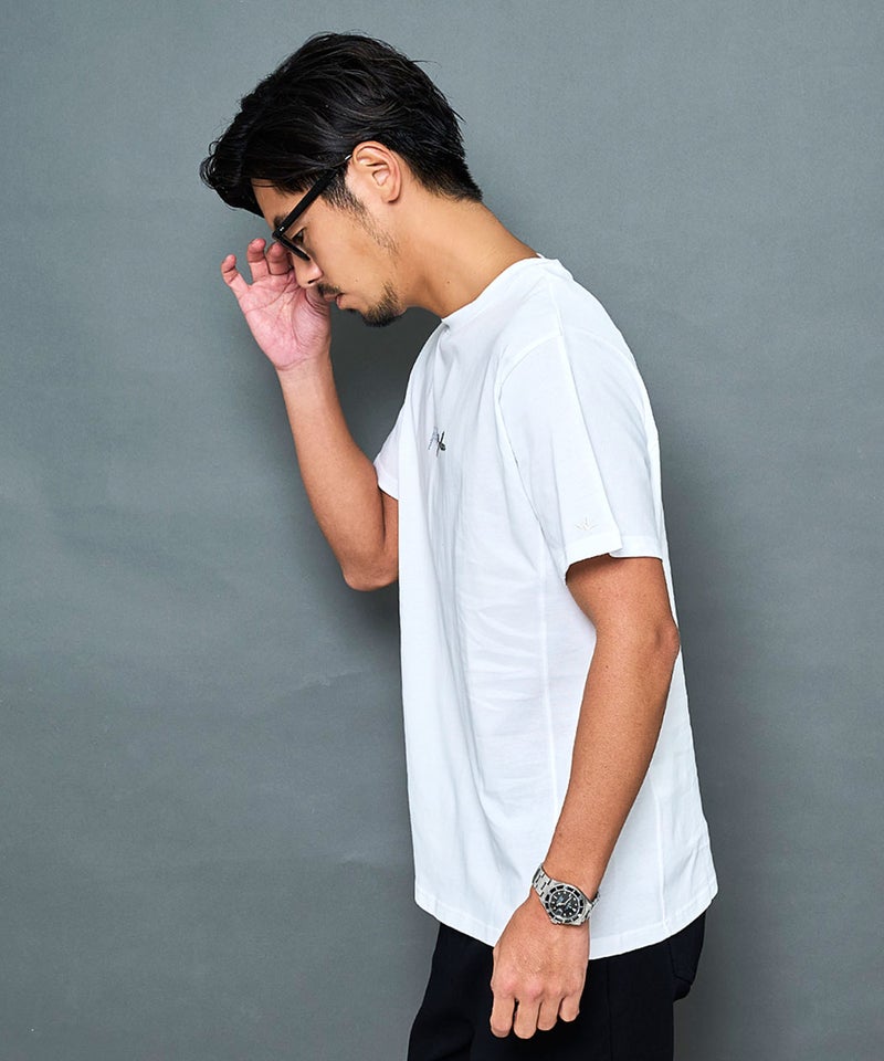 主張しすぎないロゴ使いが大人のスタイリングに自然と馴染み、インナーとしても合わせやすい一着です。