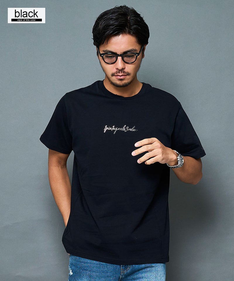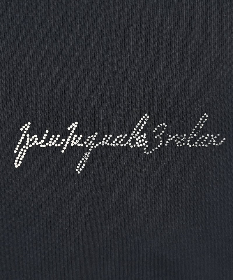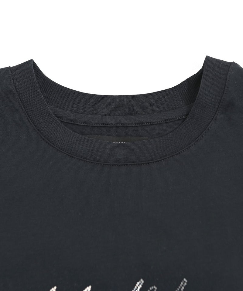 フロントに施されたラインストーンロゴが、上品な存在感を放つ半袖Tシャツ。
