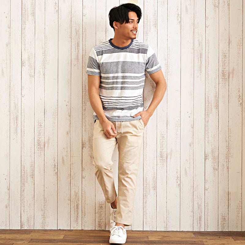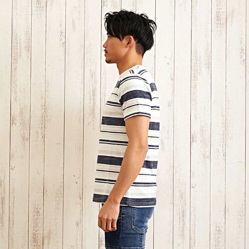 裏毛をパイル状に編み込み、タオル生地のようなループが特徴の柔らかくストレスフリーなボーダーTシャツです。