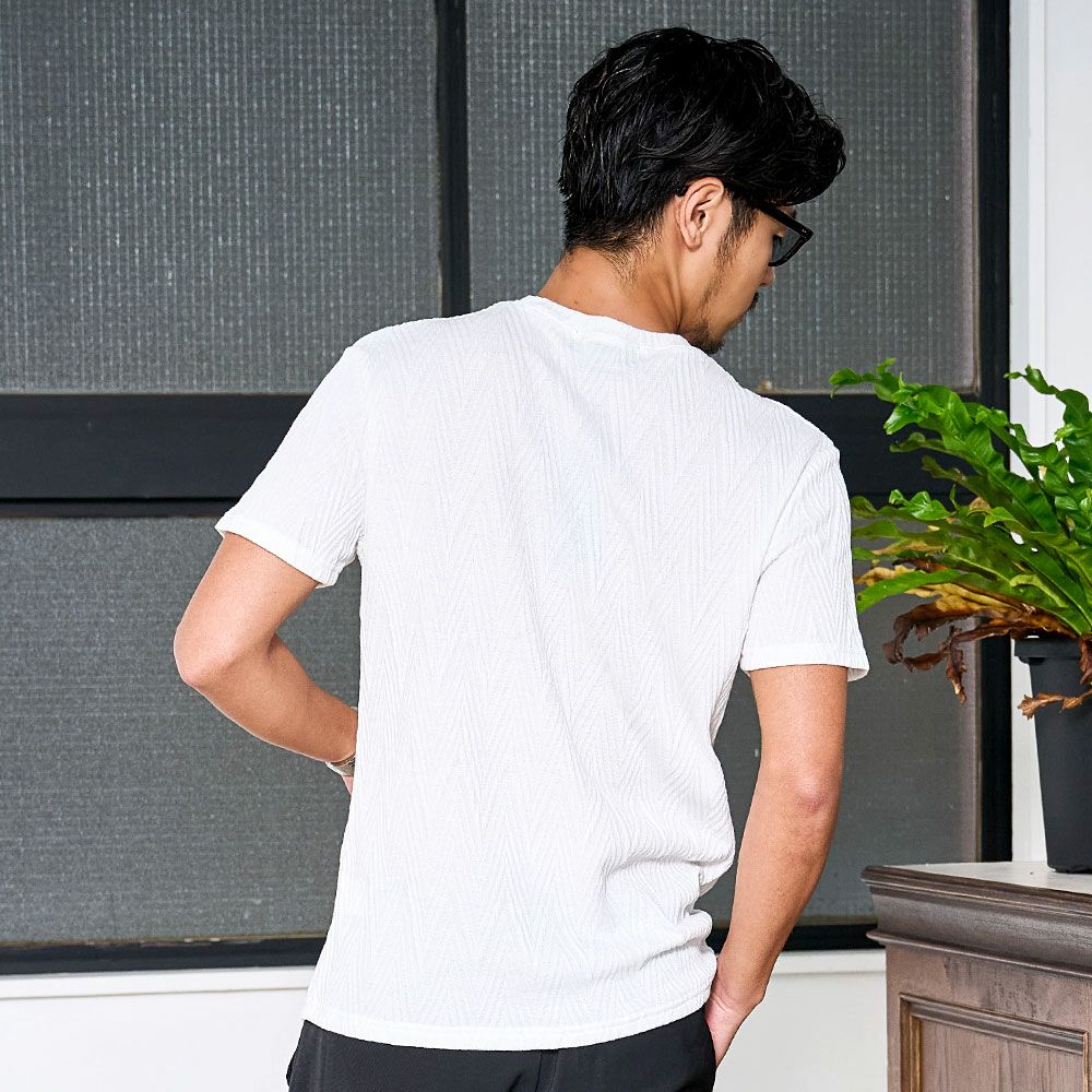 他の画像を見る ボディと同色の糸で織り上げた立体的なシェブロン柄が、シンプルながらも高級感漂う仕上がり。スタイリッシュな細身のシルエットが、スマートで男らしい大人の印象を演出してくれる一着。 CavariA(キャバリア)ランダムシェブロン半袖クルーネックTシャツ/全3色 販売価格 ¥ 5,390 税込 カートに入れる お気に入りに登録する