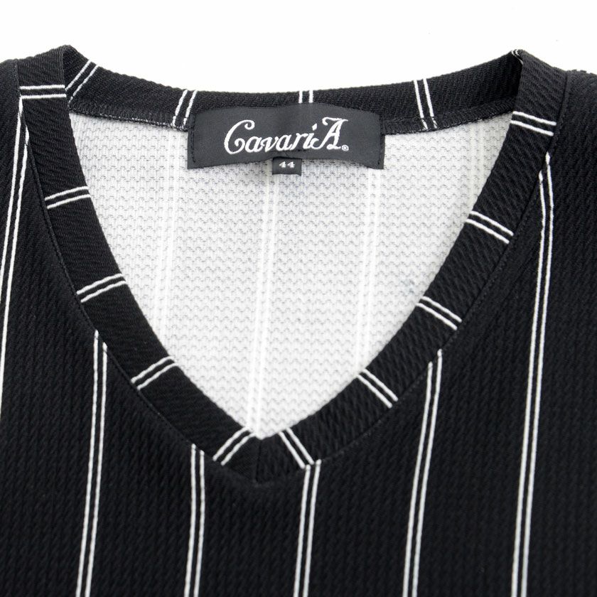 他の画像を見る Tシャツ メンズ 半袖 ストライプ柄 Vネック シンプル M L XL タイト 細身 上品 カジュアル インナー ブラック ホワイト 黒 白 ポリエステル ゴルフCavariA キャバリア 春 夏 CavariA(キャバリア)ふくれストライプ柄Vネック半袖Tシャツ/全3色 販売価格 ¥ 5,390 税込 カートに入れる お気に入りに登録する