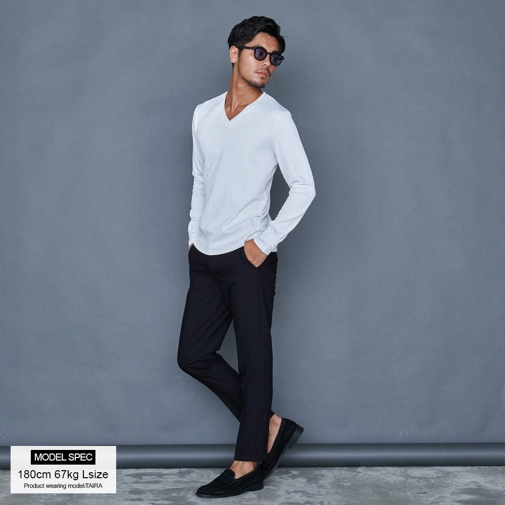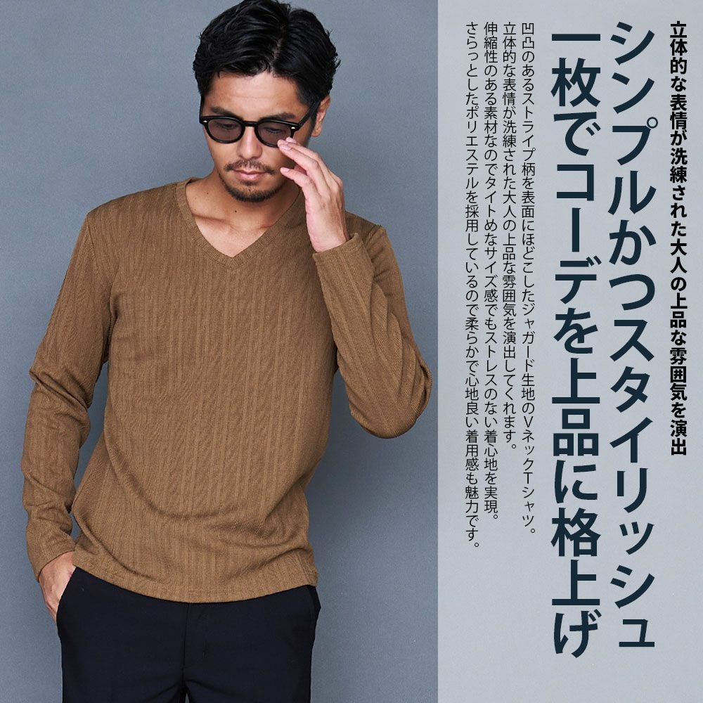 他の画像を見る 1枚で着ても、レイヤードにも最適な長袖Tシャツ。使い勝手抜群の定番アイテム。 CavariA(キャバリア)ストライプジャガード長袖VネックTEE/全3色 販売価格 ¥ 6,490 税込 カートに入れる お気に入りに登録する