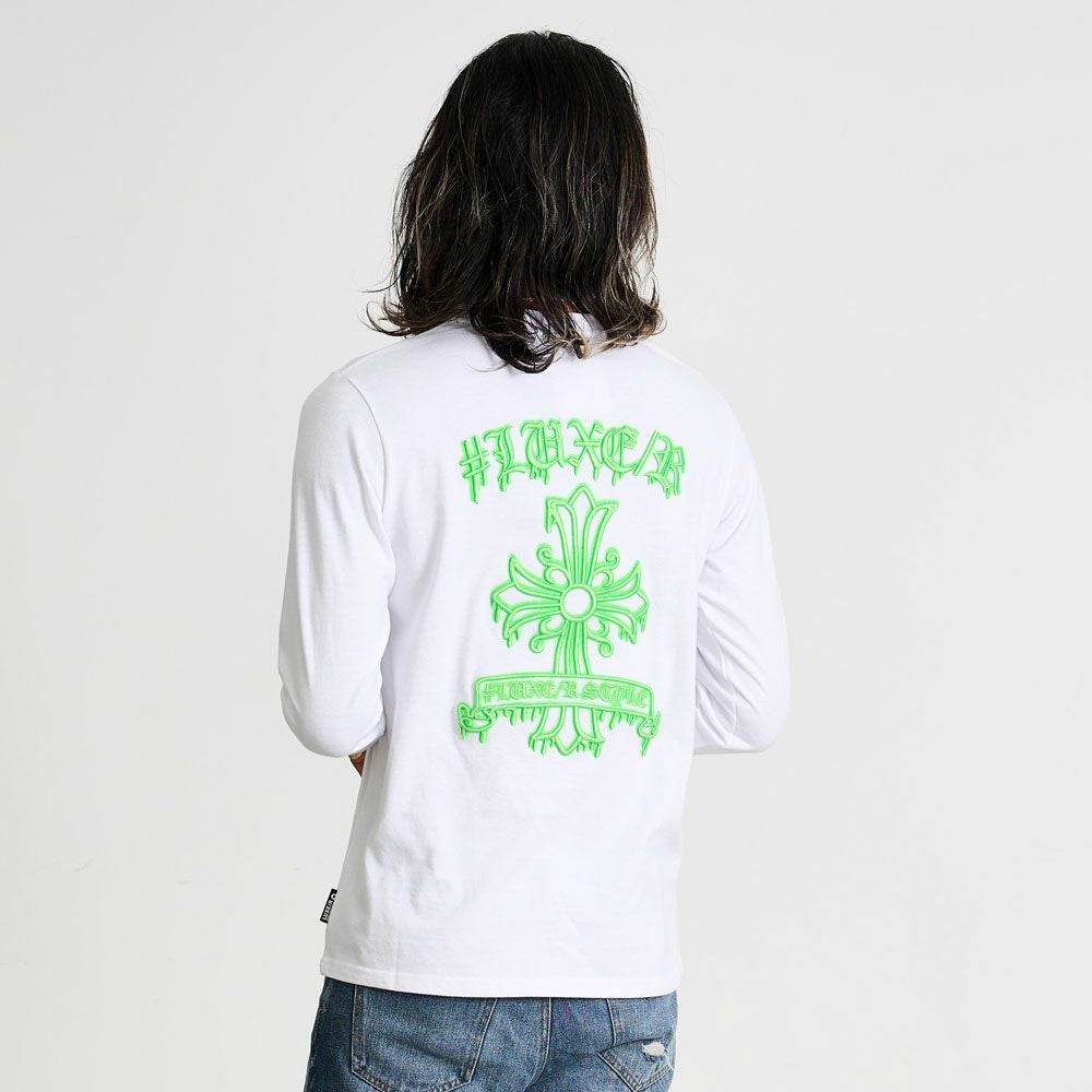 他の画像を見る 胸元に人気のミニベアモチーフを立体的なコード刺繍で表現した長袖Tシャツ。ベーシックなホワイトとブラックのボディに蛍光ピンクが目を惹くアクセントに。 LUXE/R(ラグジュ)ミニベアコード刺繍長袖Tシャツ/全2色 販売価格 ¥ 6,490 税込 カートに入れる お気に入りに登録する