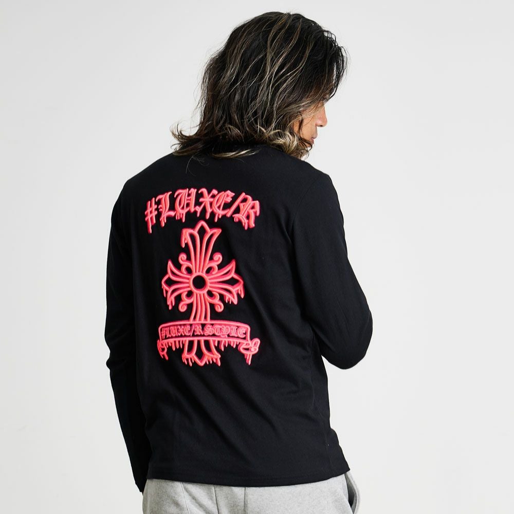 他の画像を見る フロント全体にダブルベア刺繍を施したインパクト抜群のロンT。左袖部分にはワンポイントのラバーワッペンを配置してアクセントに。 LUXE/R(ラグジュ)ロゴ総柄Wベア貼り付け長袖Tシャツ/全2色 販売価格 ¥ 6,490 税込 カートに入れる お気に入りに登録する
