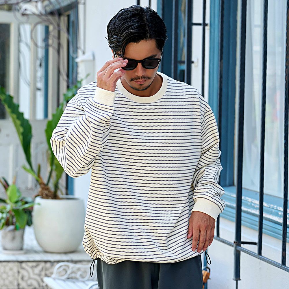 他の画像を見る 着こなし自在、ドローコード搭載。ボーダーが引き立てる上品カジュアル。どんなコーディネートにも自然と馴染みながら、着るだけで今っぽさを演出できます。 CavariA(キャバリア)ボーダースピンドル長袖Tシャツ/全2色 販売価格 ¥ 7,590 税込 カートに入れる お気に入りに登録する