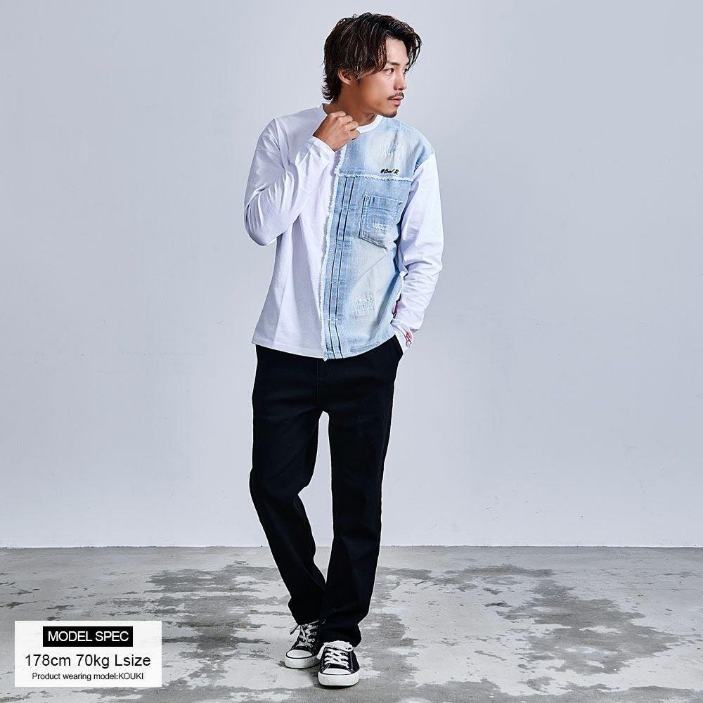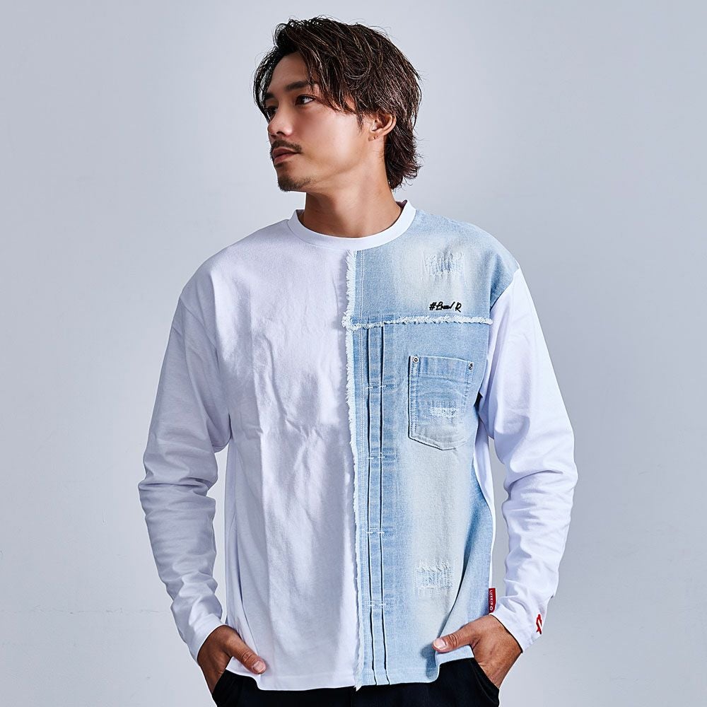 他の画像を見る - LUXE/R ラグジュ -SPORTS STYLEとURBAN STYLEをミックスさせ、ボディラインを美しく強調するフィッティングを表現。リアルクローズとしてスタイリッシュに着こなせるブランド。 LUXE/R(ラグジュ)デニム切り替えロンTEE/全2色 販売価格 ¥ 7,590 税込 カートに入れる お気に入りに登録する