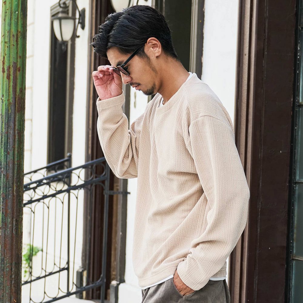 他の画像を見る コーデュロイのような風合いを持つ生地を使用し、シンプルながらも表情のある仕上がり。ルーズシルエットで仕立てたプルオーバータイプのロンTは、抜け感のある大人カジュアルを演出。 CavariA(キャバリア)サーマルスピンドル長袖Tシャツ/全4色 販売価格 ¥ 6,490 税込 カートに入れる お気に入りに登録する