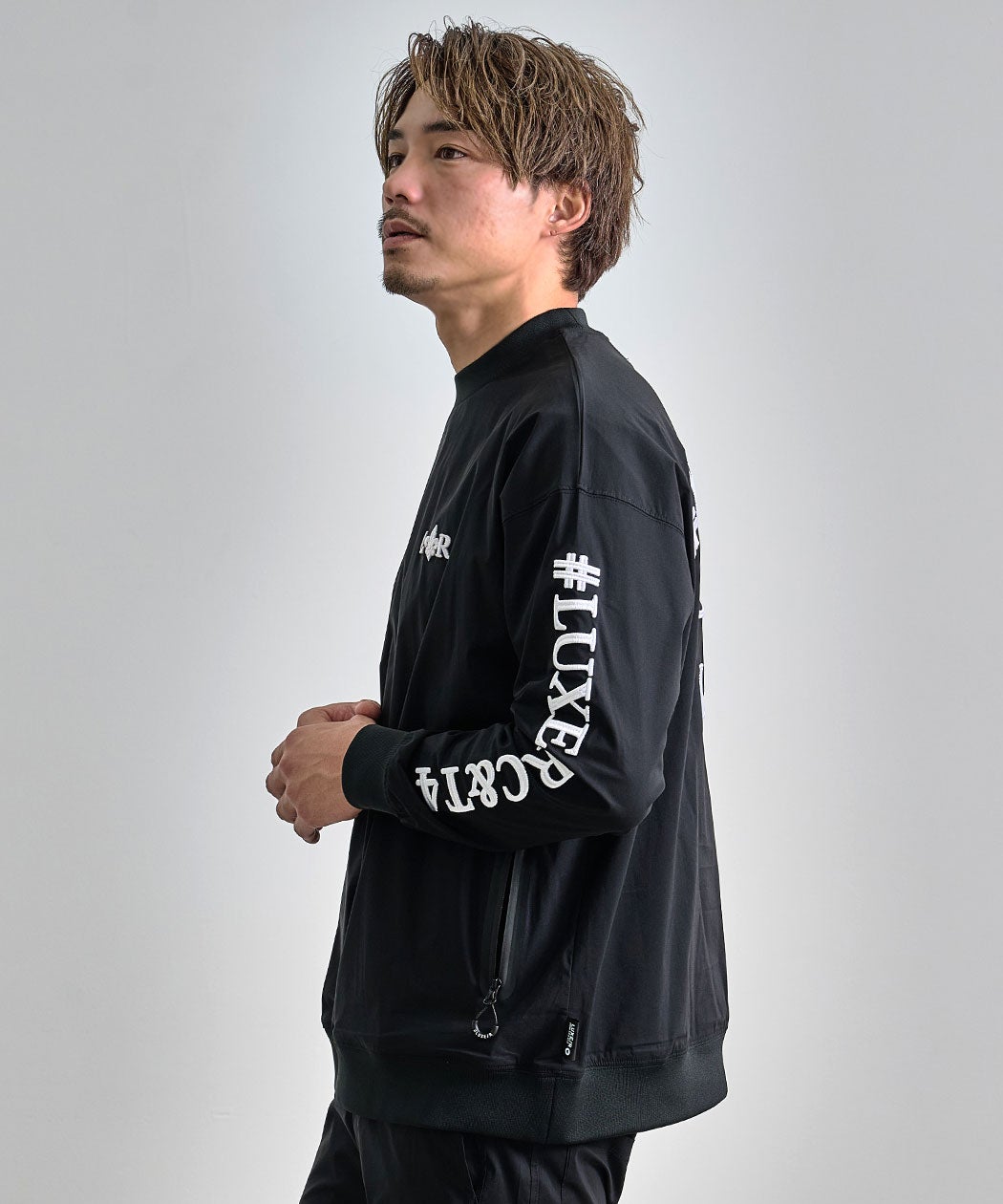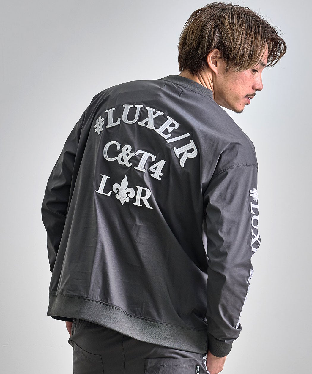 他の画像を見る フロントのワンポイント刺繍に加え、両袖とバックにもロゴ刺繍を施した、遊び心と高級感を兼ね備えた一着。立体感のある表情が存在感を与えてくれます。 LUXE/R(ラグジュ)コード刺繍ナイロンストレッチ布帛クルー/全3色 販売価格 ¥ 10,890 税込 カートに入れる お気に入りに登録する