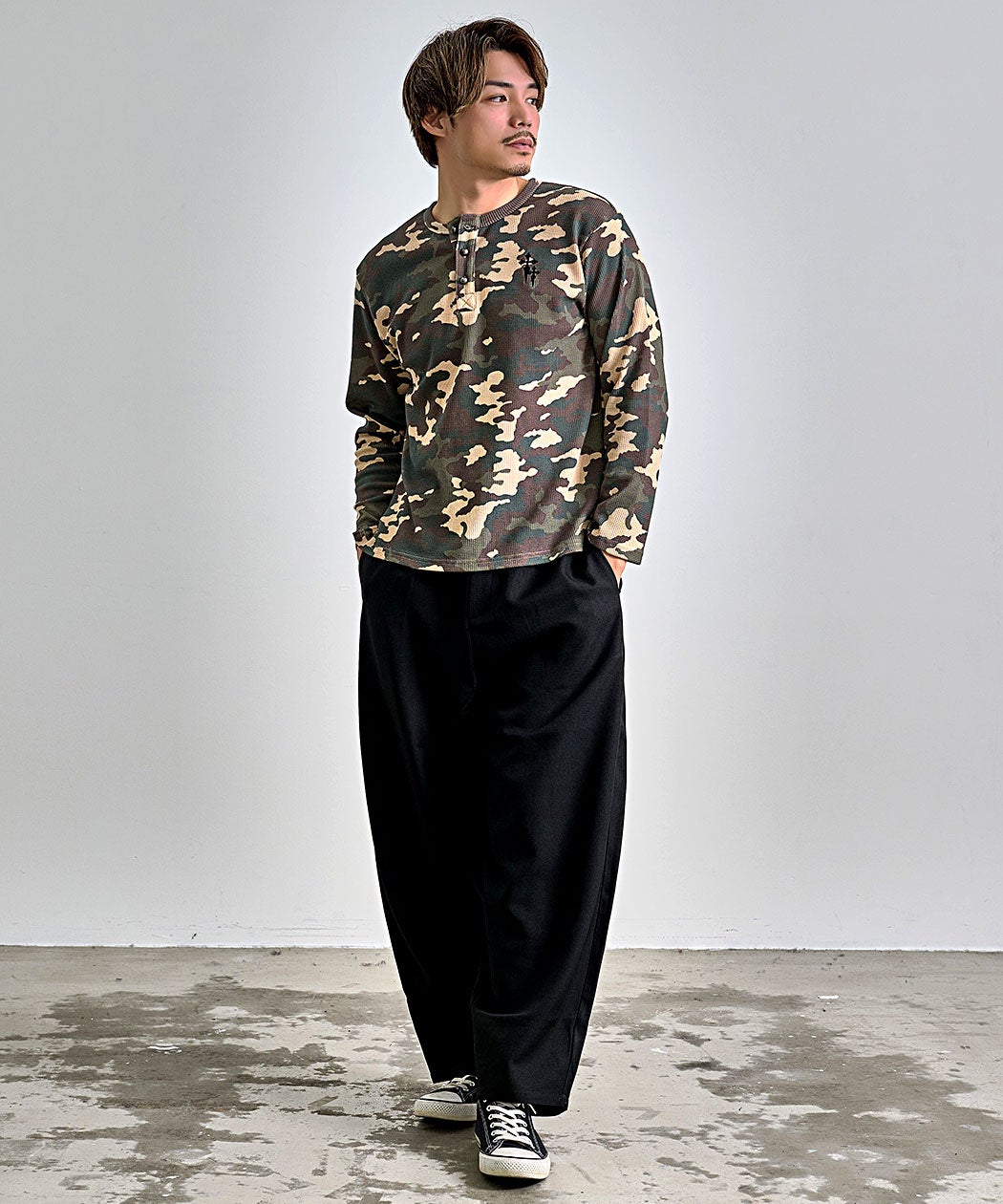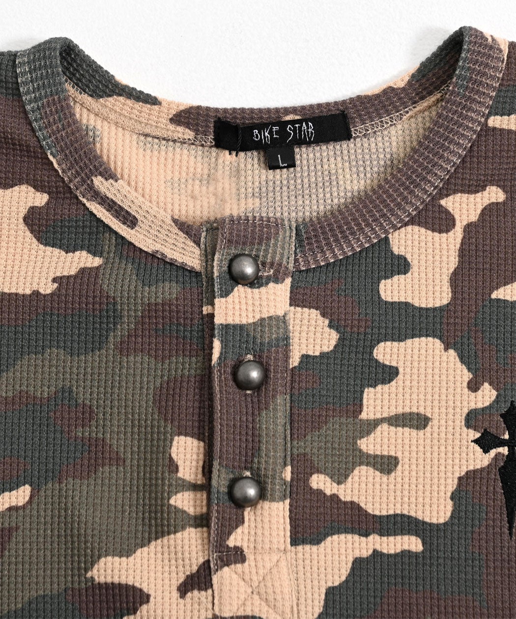 他の画像を見る 1枚でも、インナーでも主役級の存在感。快適さを追求したワッフル素材の迷彩柄ロンT。 Bitter select(ビターセレクト)ワンポイント刺繍迷彩ワッフルヘンリーロンT/全2色 販売価格 ¥ 5,390 税込 カートに入れる お気に入りに登録する