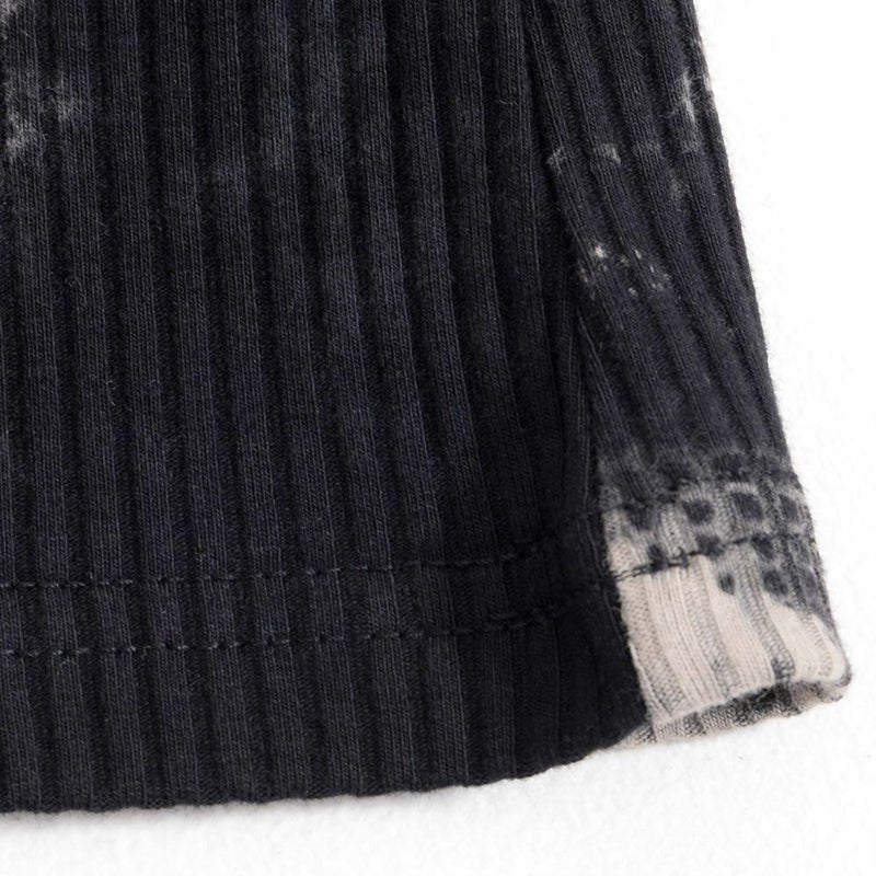 凹凸のある表面にムラ染めほどこしたクルーネックTシャツ。