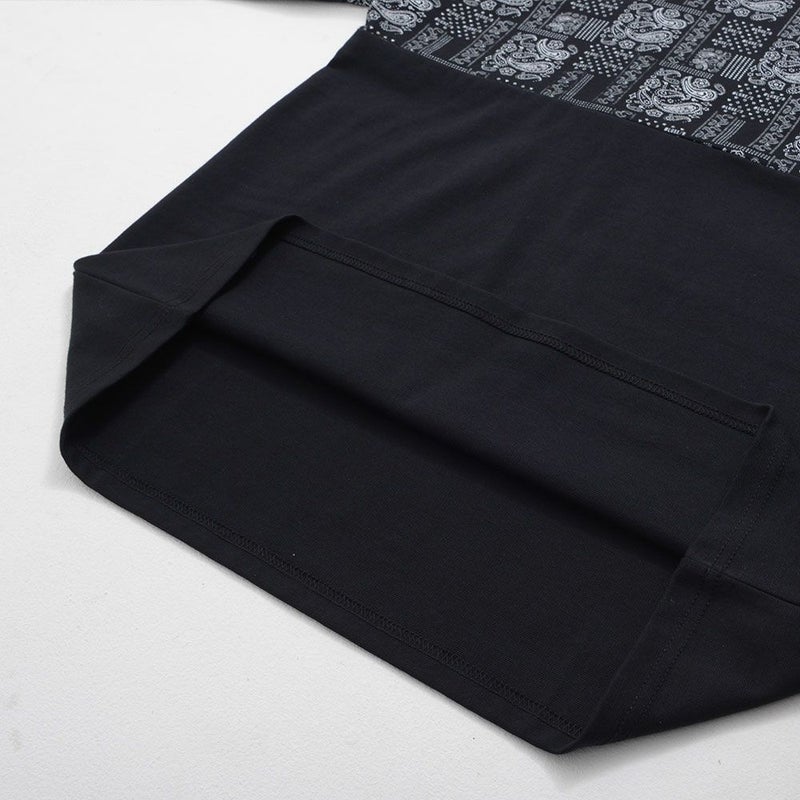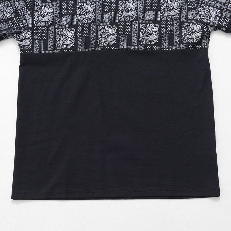ブランドオリジナルのペイズリー柄を使用し、ボディの上下を切り替えたバイカラーデザインが目を惹くモックネックカットソー。