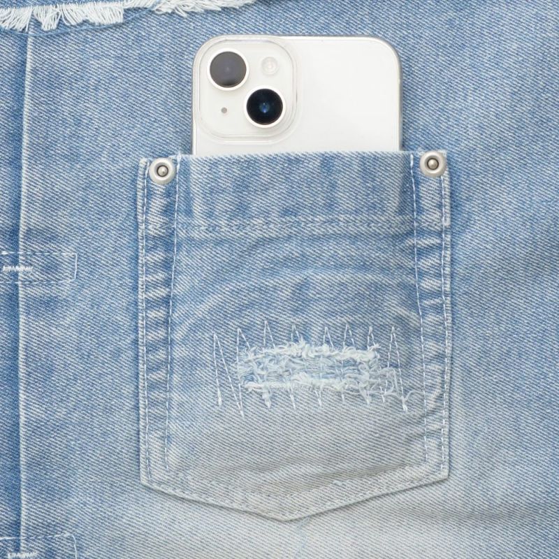 胸のポケットやダメージ加工、フリンジを取り入れたディテールが、他にはない個性を演出します。