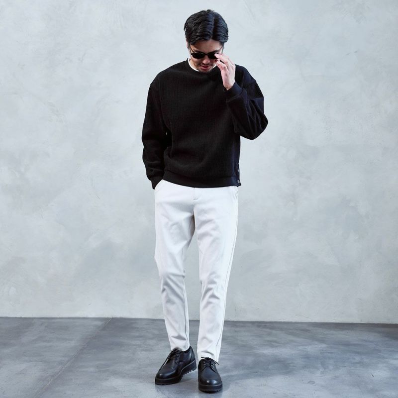 ややゆとりを持たせたシルエットで、リラックス感がありながらもだらしなく見えないバランスに設計。