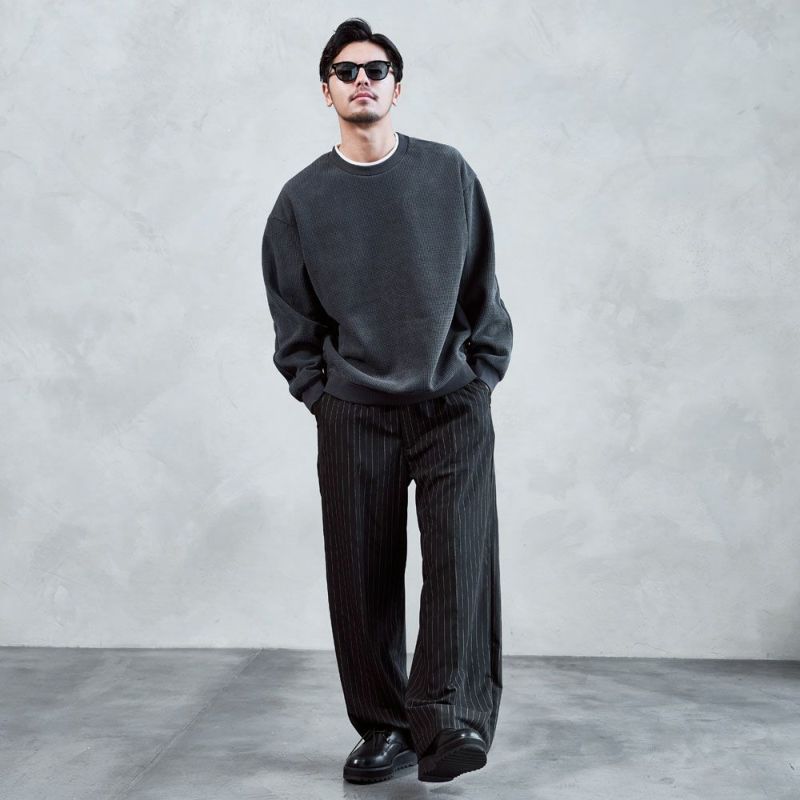 クラシックなスタイルとストリートの自由さを掛け合わせ、現代都市の光と影を纏うような存在感を表現します。