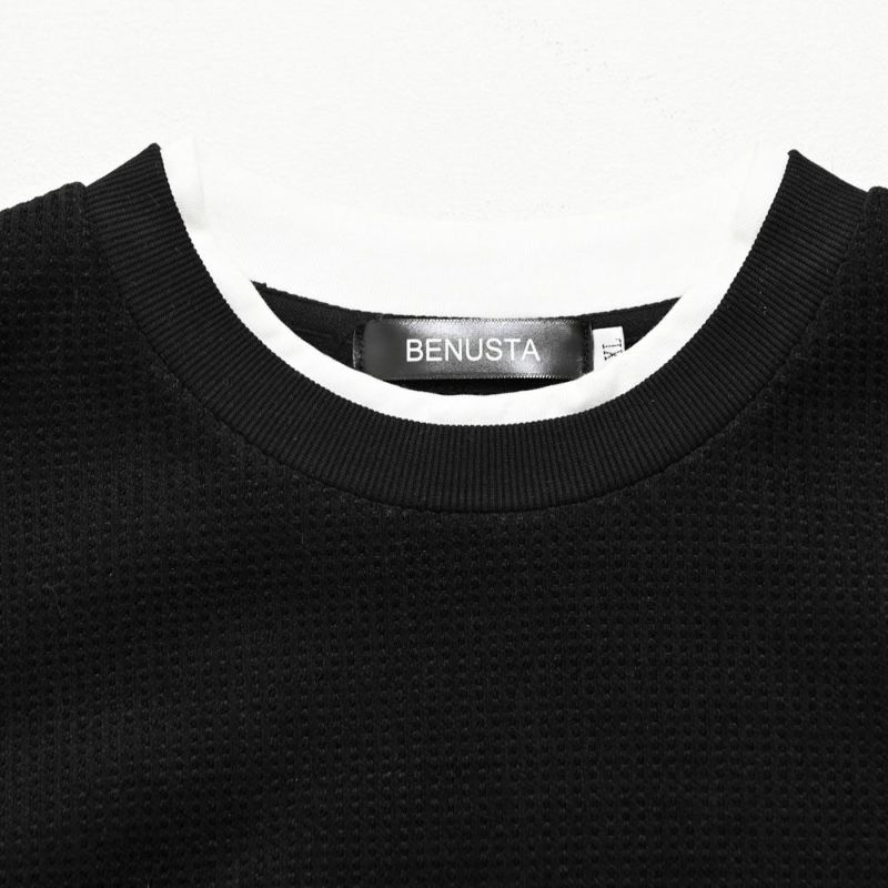 BITTER STORE(ビターストア)にBENUSTA【ベヌスタ】サイドボタンフェイクレイヤードトレーナーが入荷しました。