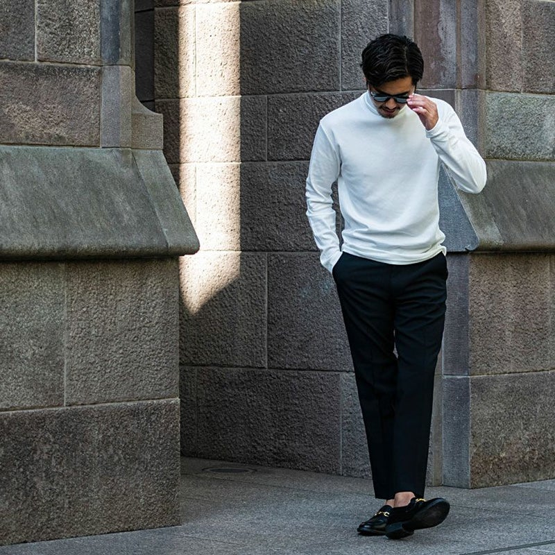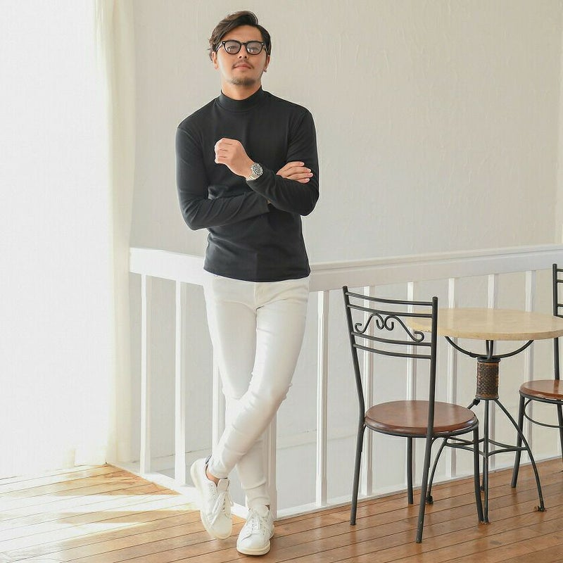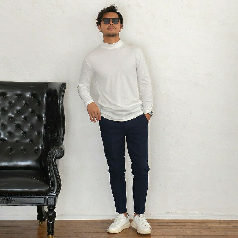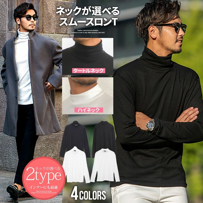 柔らかく滑らかな肌触りのスムース素材を採用したハイネックとタートルネックの長袖Tシャツ。