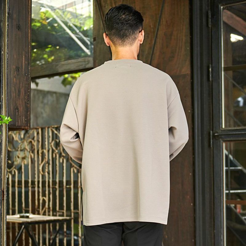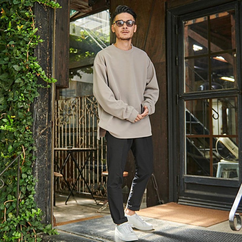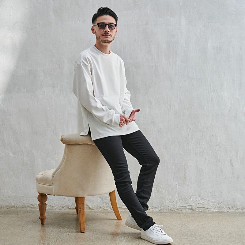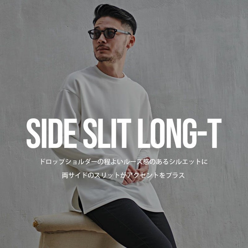 ドロップショルダーの程よいルーズ感のあるシルエットに、両サイドのスリットがアクセントをプラス。