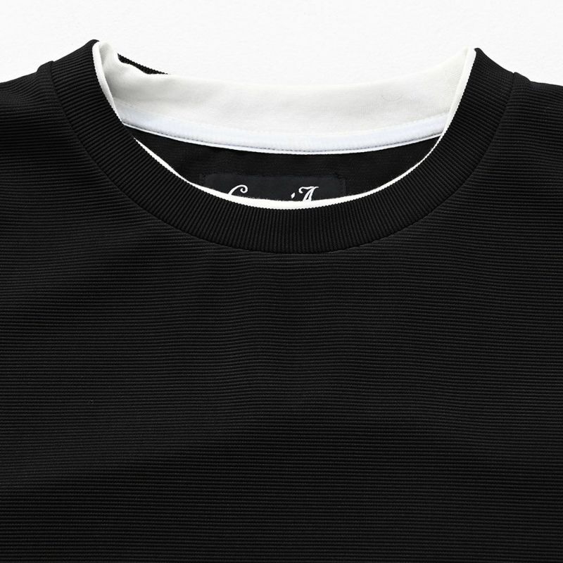 まるで重ね着をしているかのようなフェイクレイヤード仕様の長袖Tシャツ。