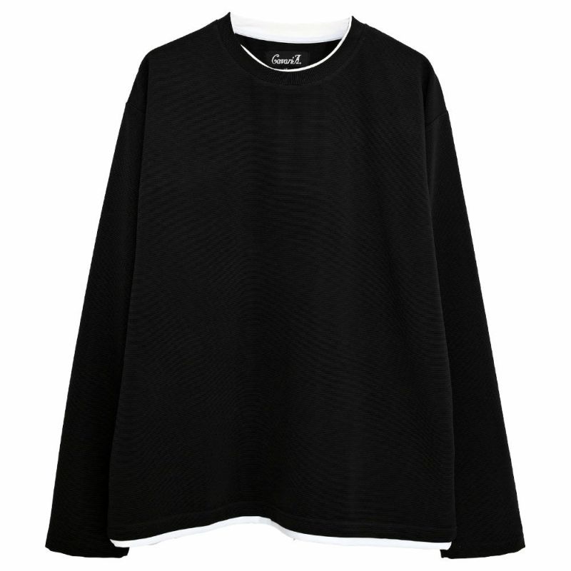 Tシャツ メンズ おしゃれ 長袖 長袖Tシャツ ロンT カットソー フェイクレイヤード 重ね着風 無地 クルーネック ビッグシルエット オーバーサイズ CavariA(キャバリア)クルーネック フェイクレイヤードロンTEE/全3色