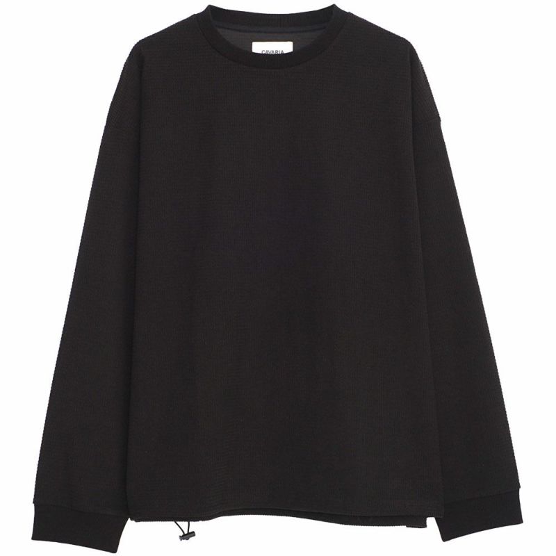 コーデュロイのような風合いを持つ生地を使用し、シンプルながらも表情のある仕上がり。ルーズシルエットで仕立てたプルオーバータイプのロンTは、抜け感のある大人カジュアルを演出。 CavariA(キャバリア)サーマルスピンドル長袖Tシャツ/全4色
