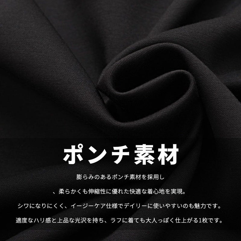 膨らみのあるポンチ素材を採用し、柔らかくも伸縮性に優れた快適な着心地を実現。