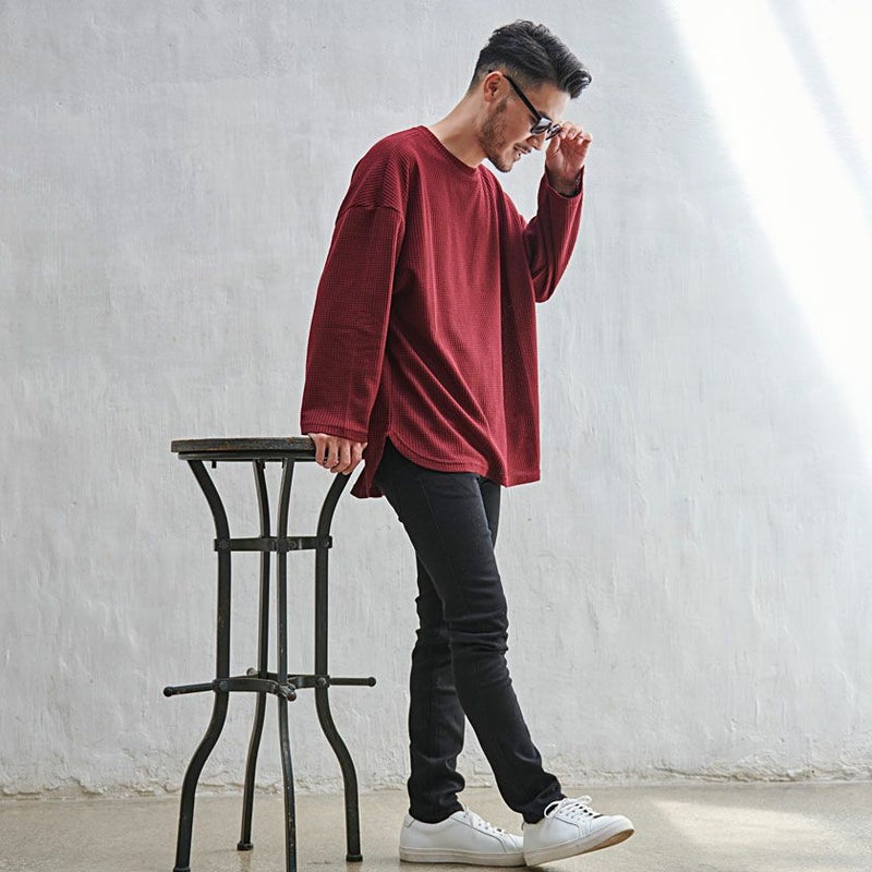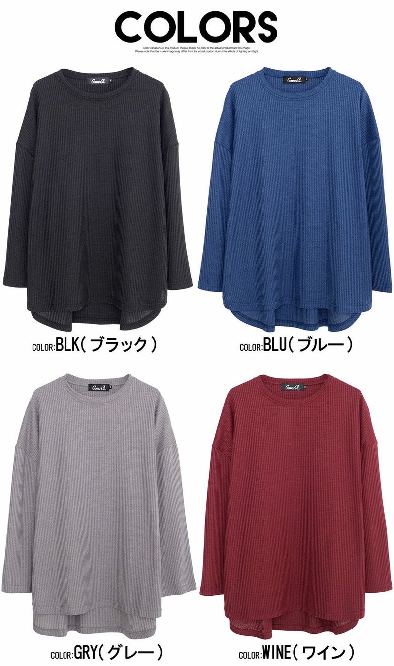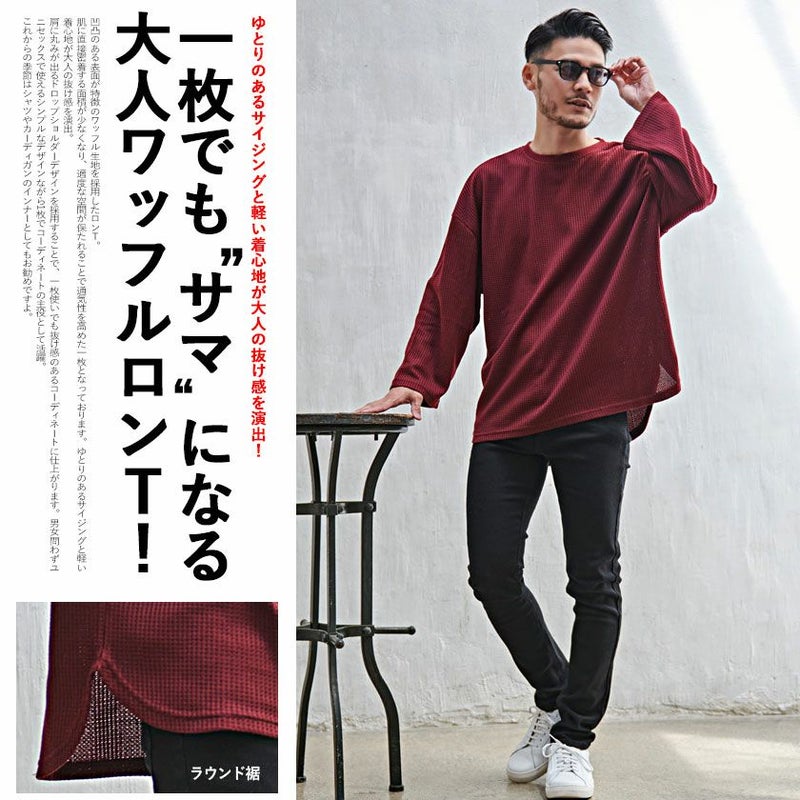 1枚で着ても、レイヤードにも最適な長袖Tシャツ。使い勝手抜群の定番アイテム。 CavariA(キャバリア)ワッフル調ビッグシルエット長袖Tシャツ/全4色