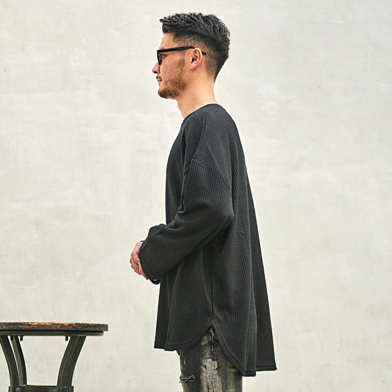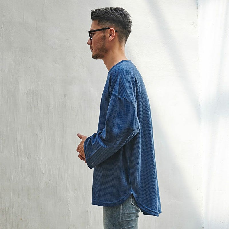 凹凸のある表面が特徴のワッフル生地を採用したロンT。
