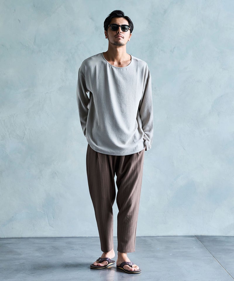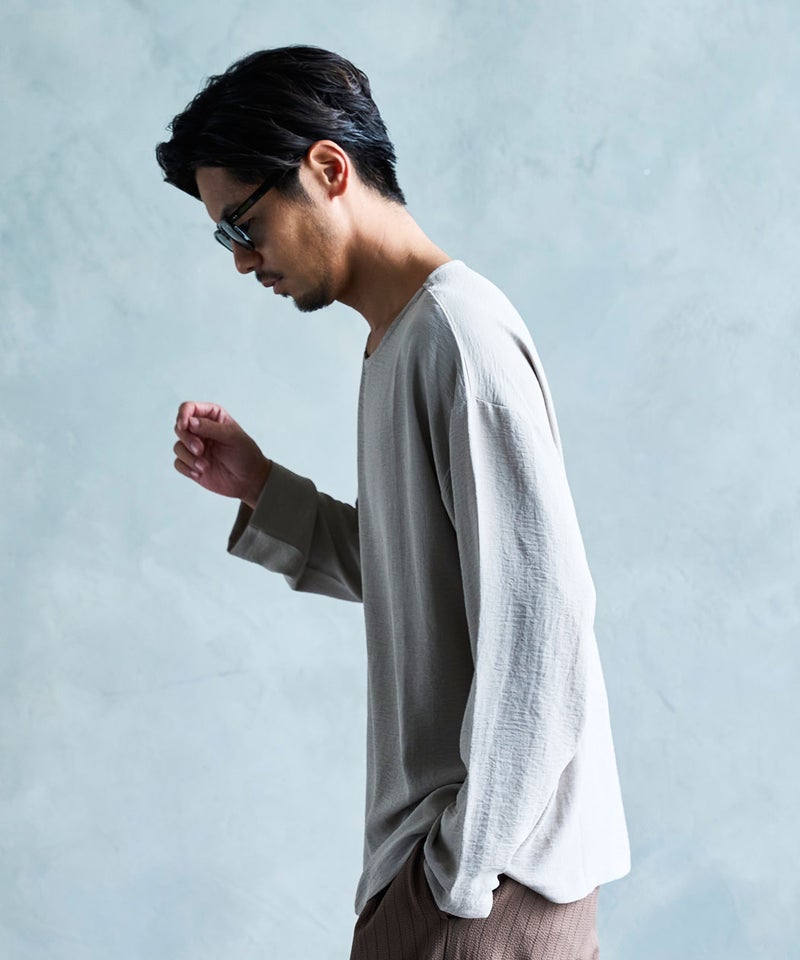Tシャツ感覚で気軽に着られながら、上品さのある見た目で大人の着こなしにマッチする一枚。