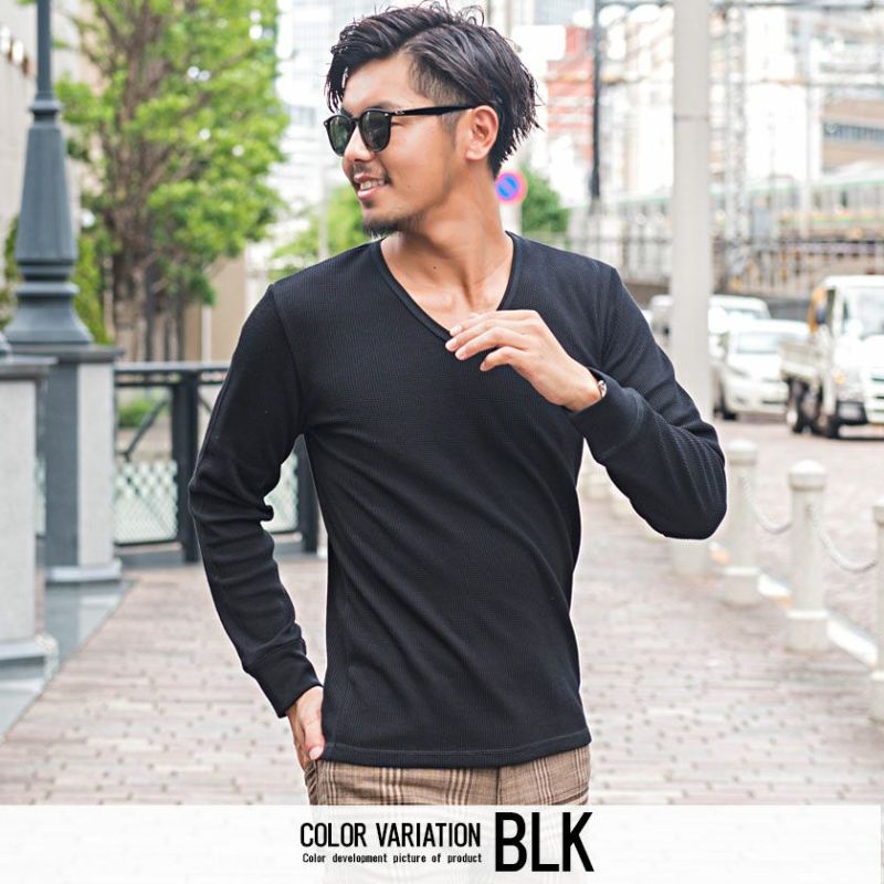Tシャツ メンズ 長袖 3枚セット 3枚組 ロンT 無地 長袖Tシャツ Vネック シンプル 黒 白 ブラック グレー ホワイト トップス カットソー S M L XL 秋 冬 クルーネック 【送料無料】CavariA(キャバリア)3Pパック サーマルVネック長袖Tシャツ/3枚セット