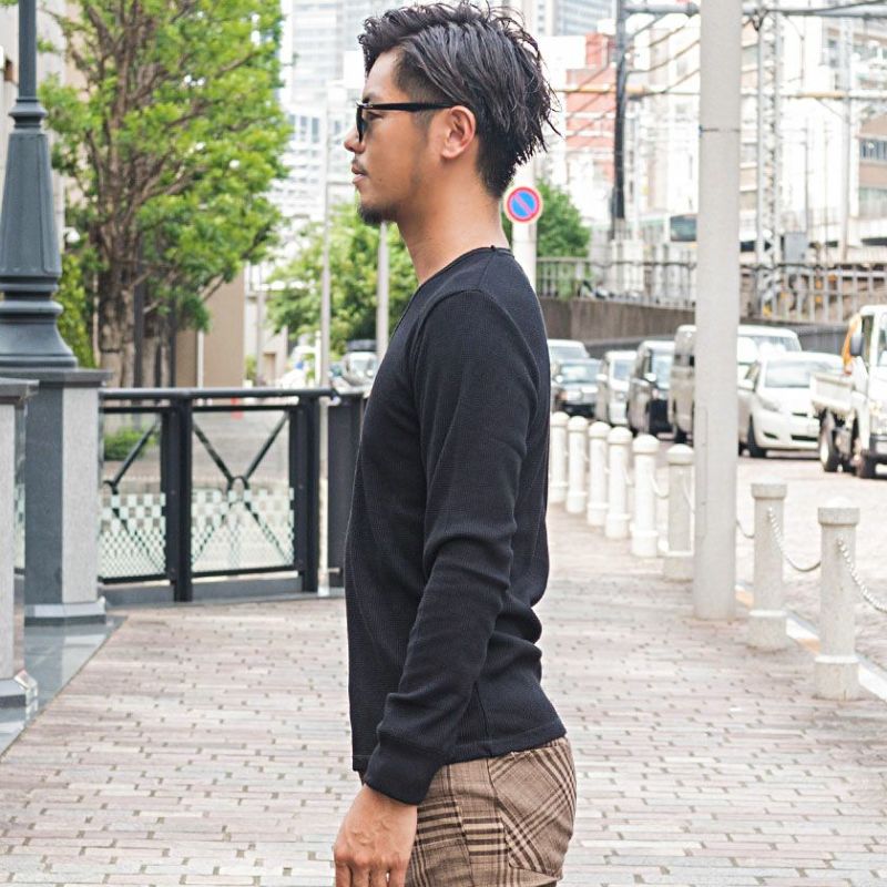 しっかりとした厚みと凹凸のある表面が特徴のサーマル生地を採用。