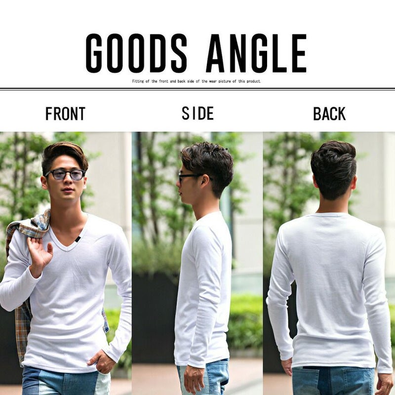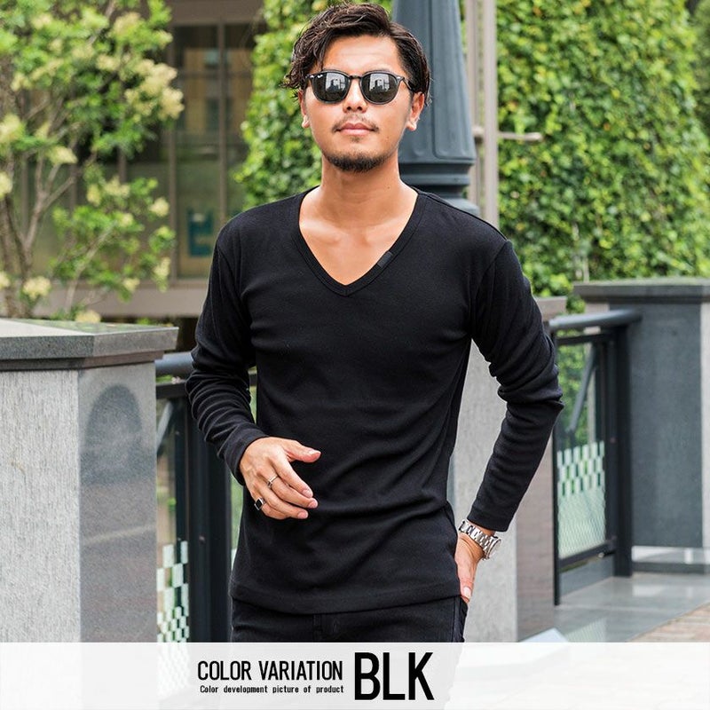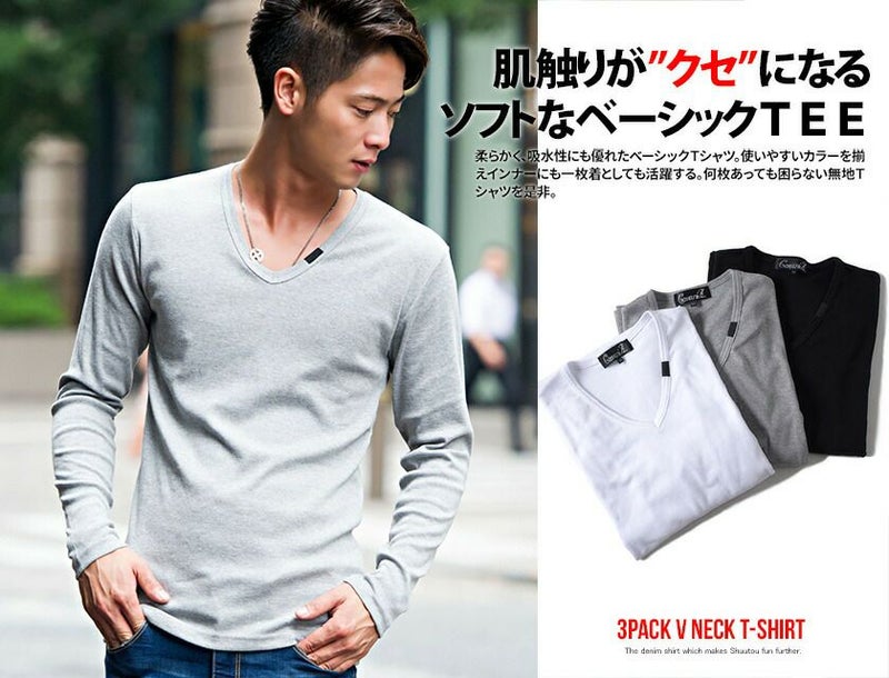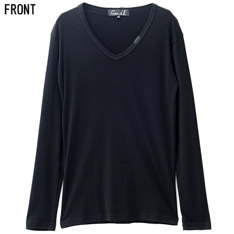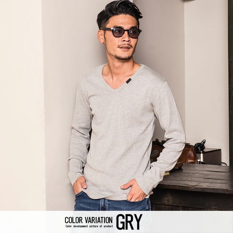 シンプルなプレーンのVネック長袖Tシャツ。