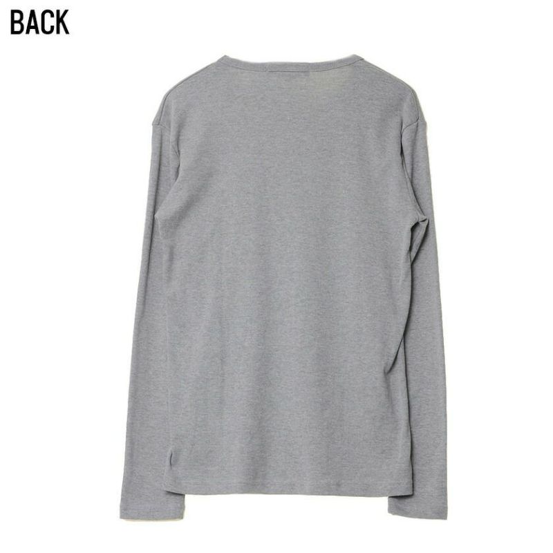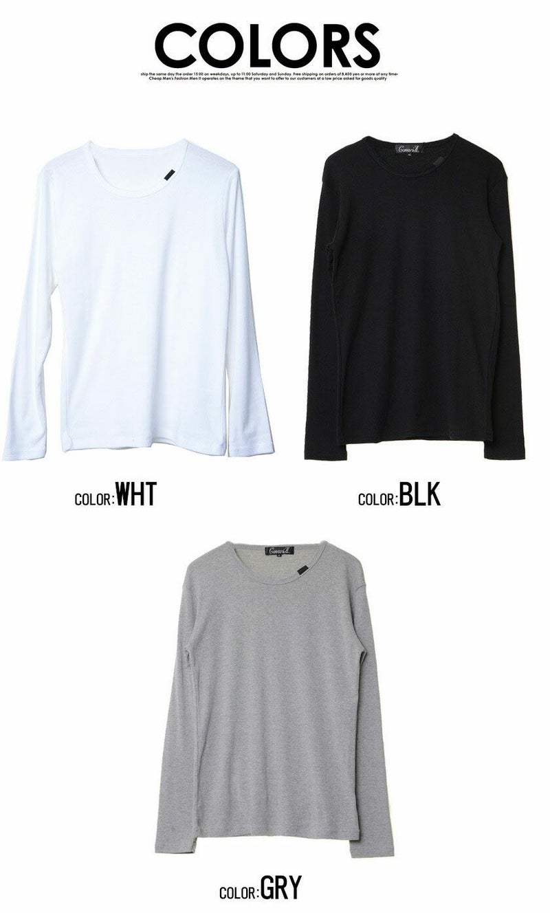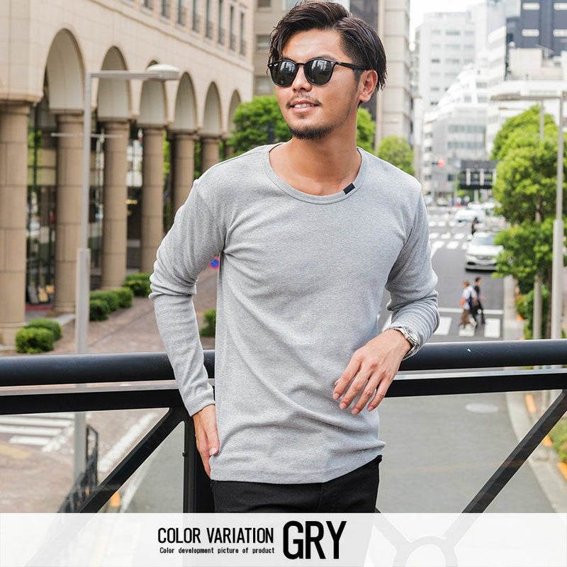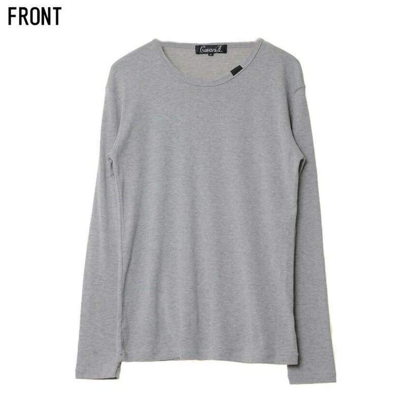 シンプルなプレーンのクルーネック長袖Tシャツ。