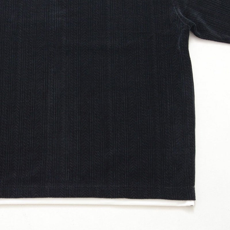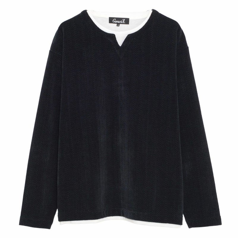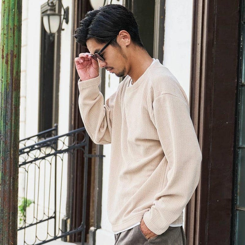 モールジャガード素材を使用したキーネックロングTシャツ。