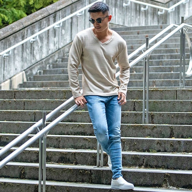 首元は程よい深さのVネックを採用しすっきりとした細身のシルエットは洗練された大人の印象を与えてくれます。