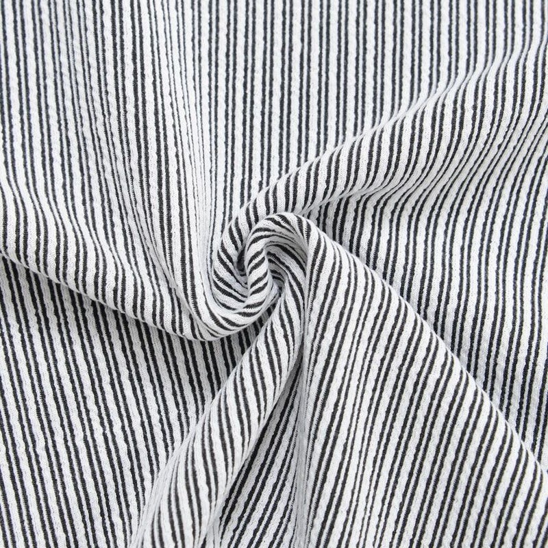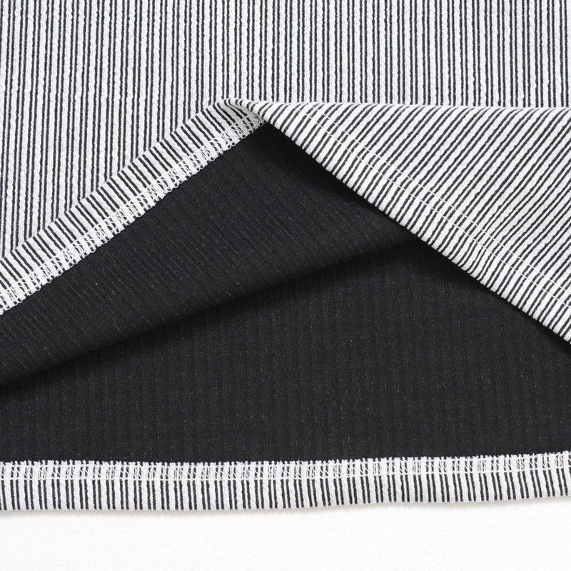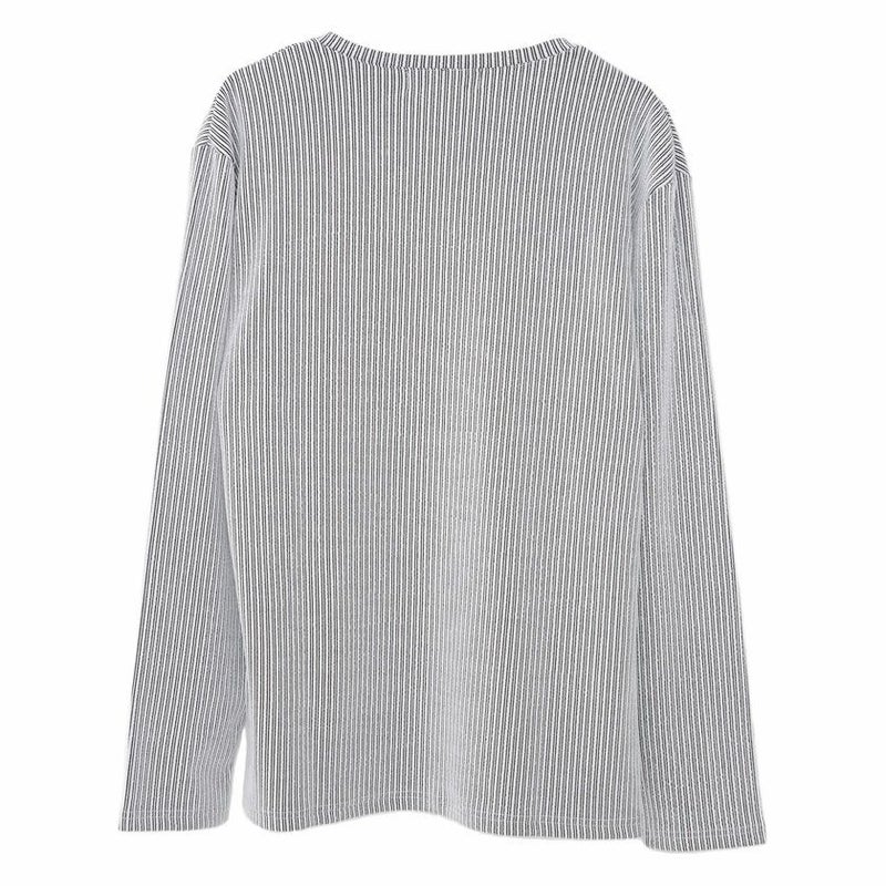 ふくれ織りで表面に立体的なストライプ柄を表現したロンT。