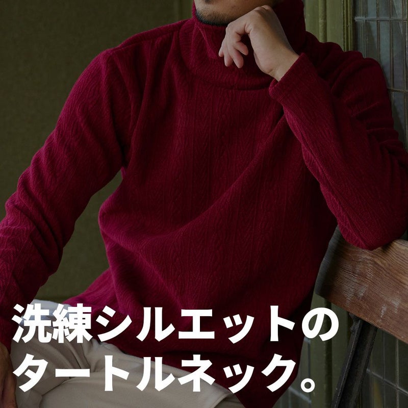 立体感のあるケーブル編みがシンプルな中に存在感を与え、大人の上品な雰囲気を演出します。
