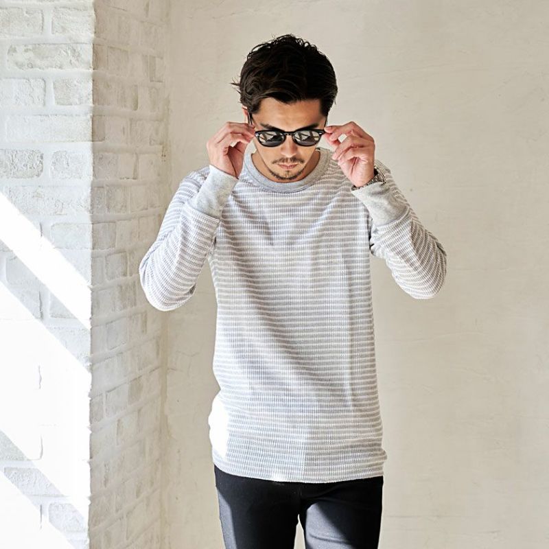 長袖のクルーネックに新しくボーダー柄が加わりました。