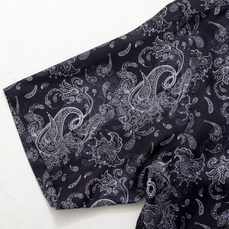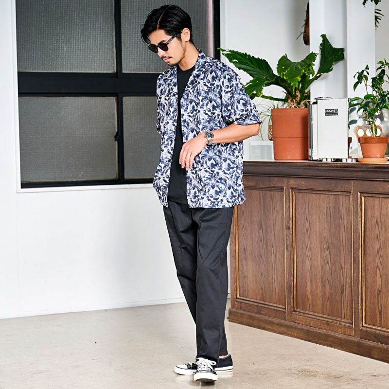 【機能性×個性が光る、大人の総柄オープンカラーシャツ】