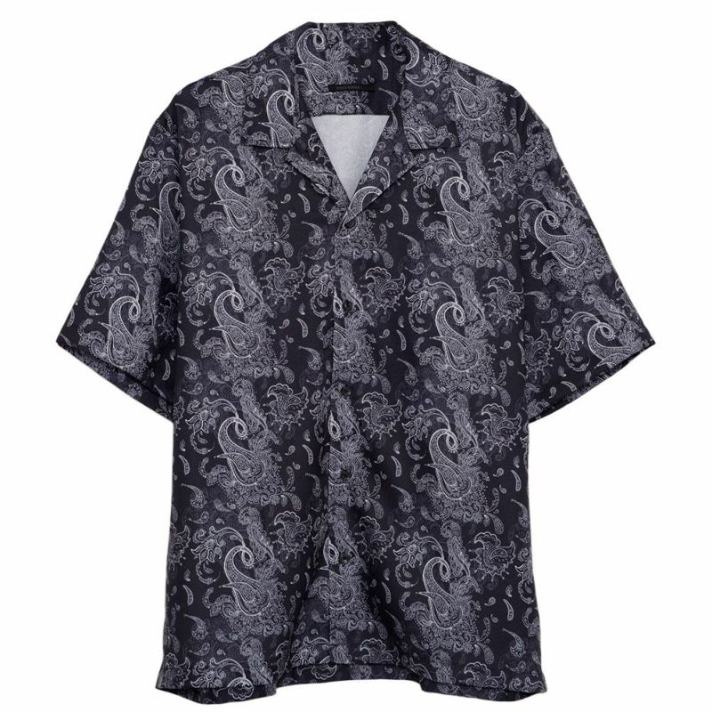 一枚で存在感を放つ総柄デザインの半袖シャツ。