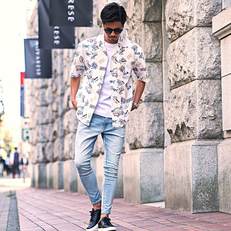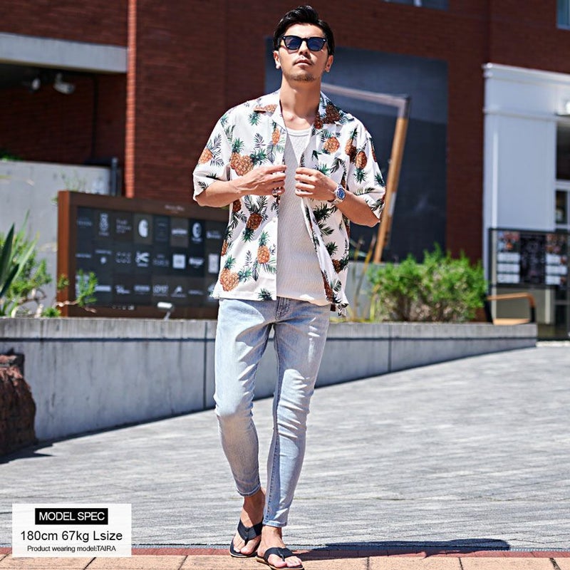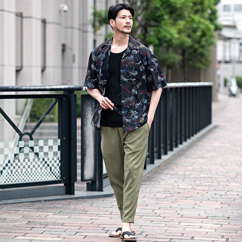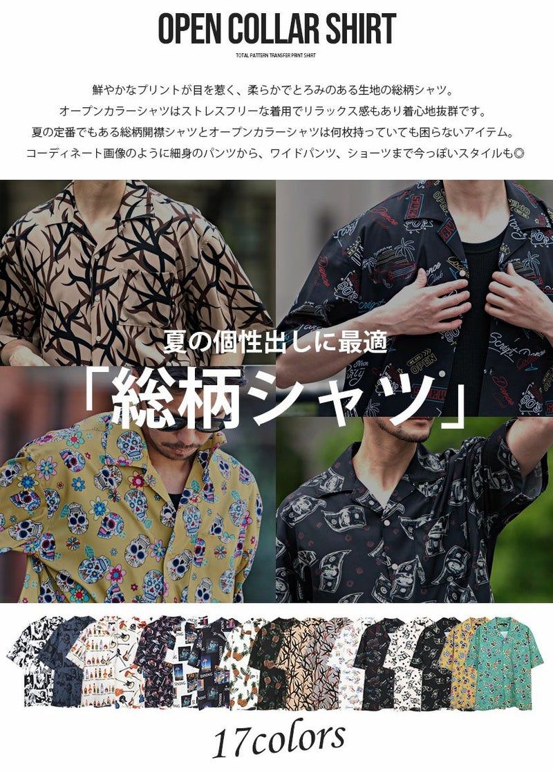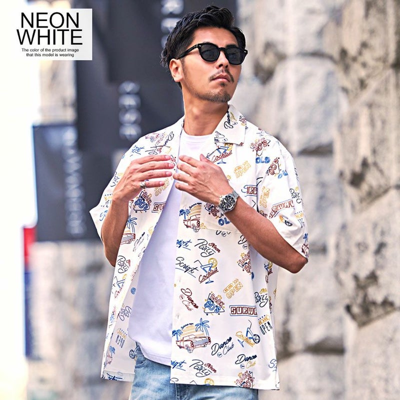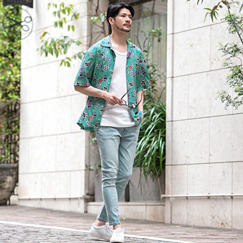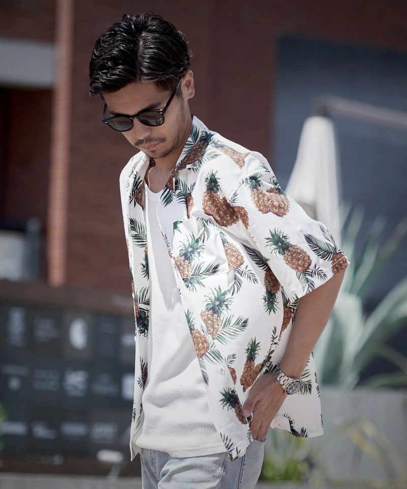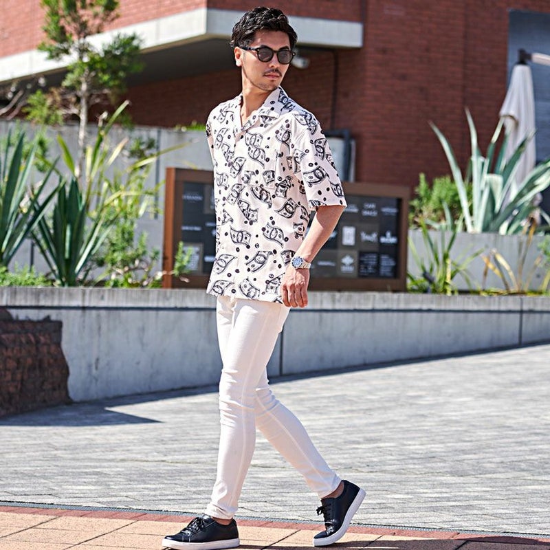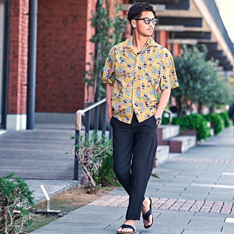 夏の定番でもある総柄開襟シャツとオープンカラーシャツは何枚持っていても困らないアイテム。