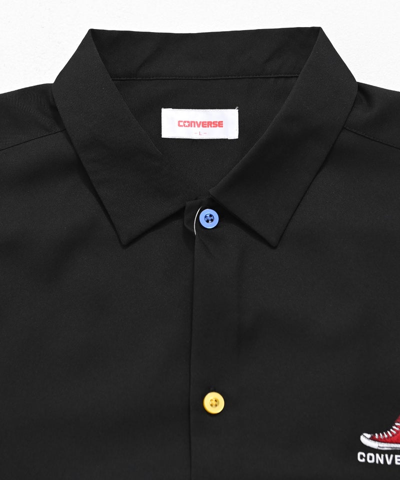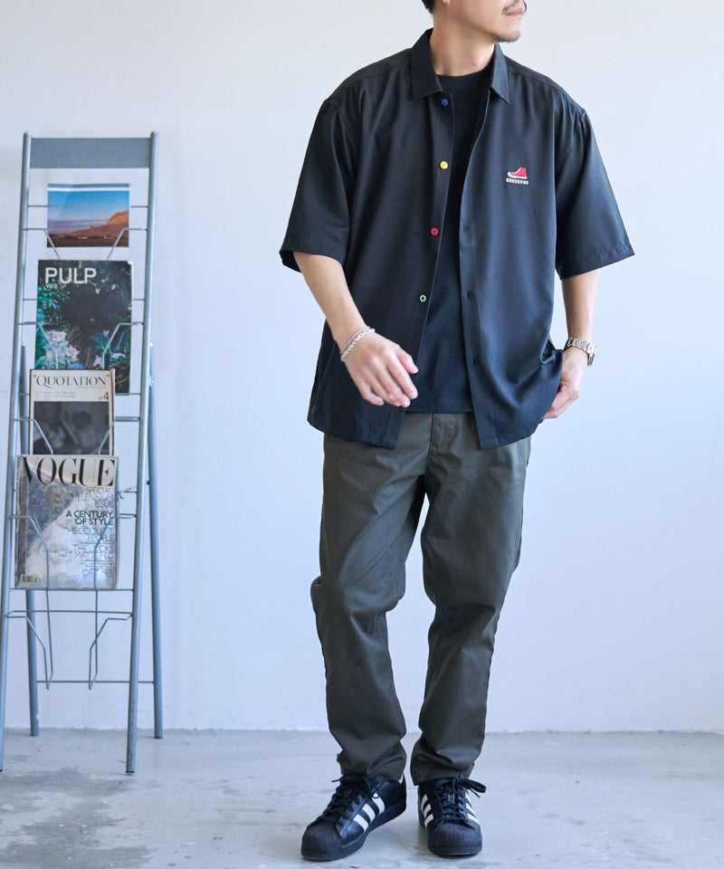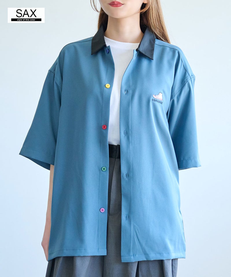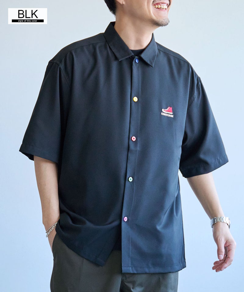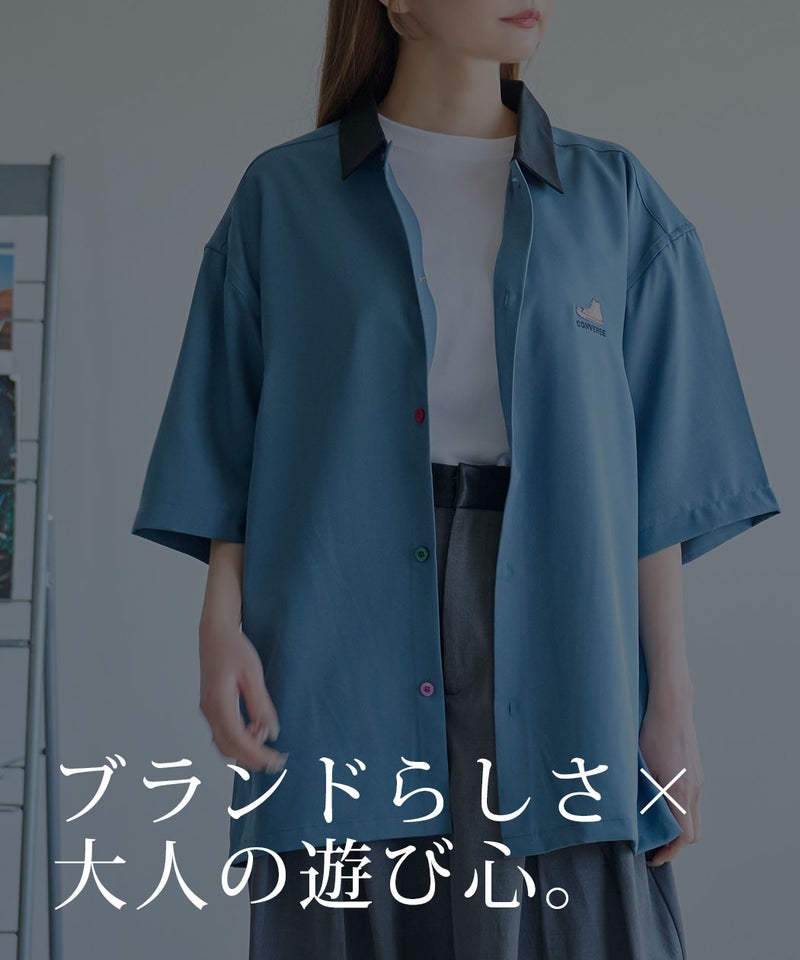 CONVERSEらしいベーシックなデザインながら、襟配色とカラフルボタンが大人の遊び心を感じさせる半袖シャツ。