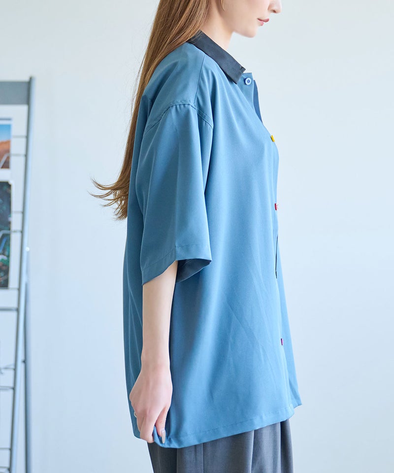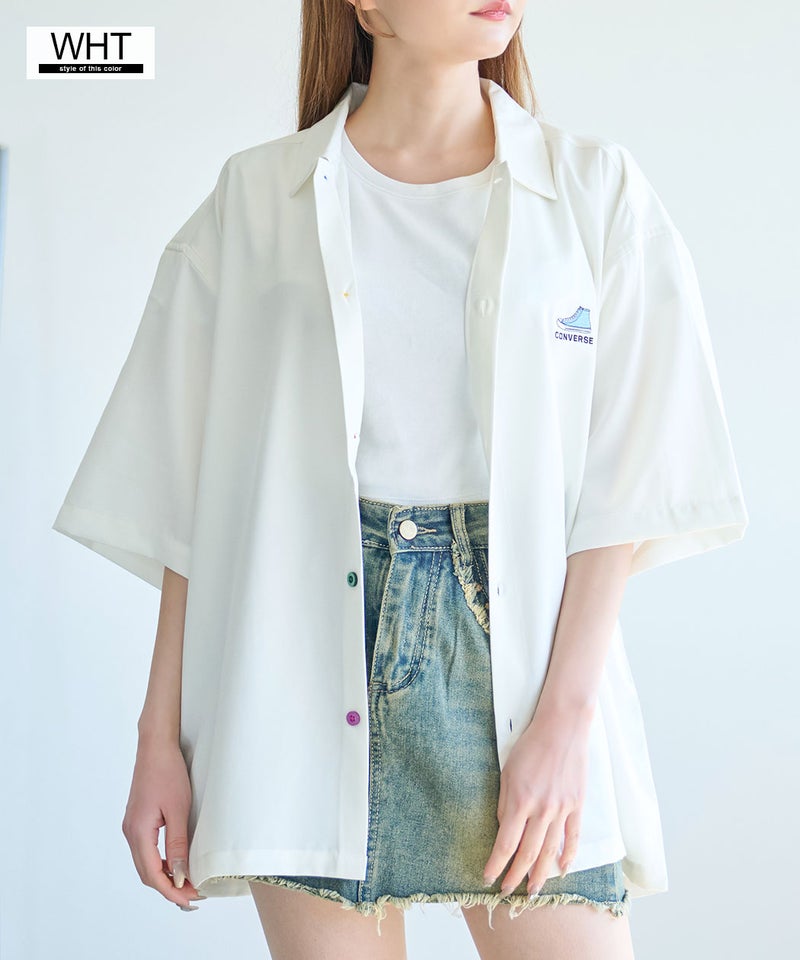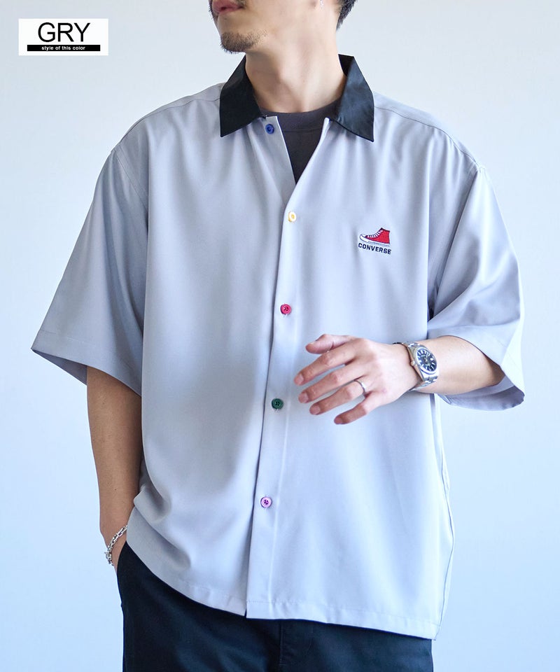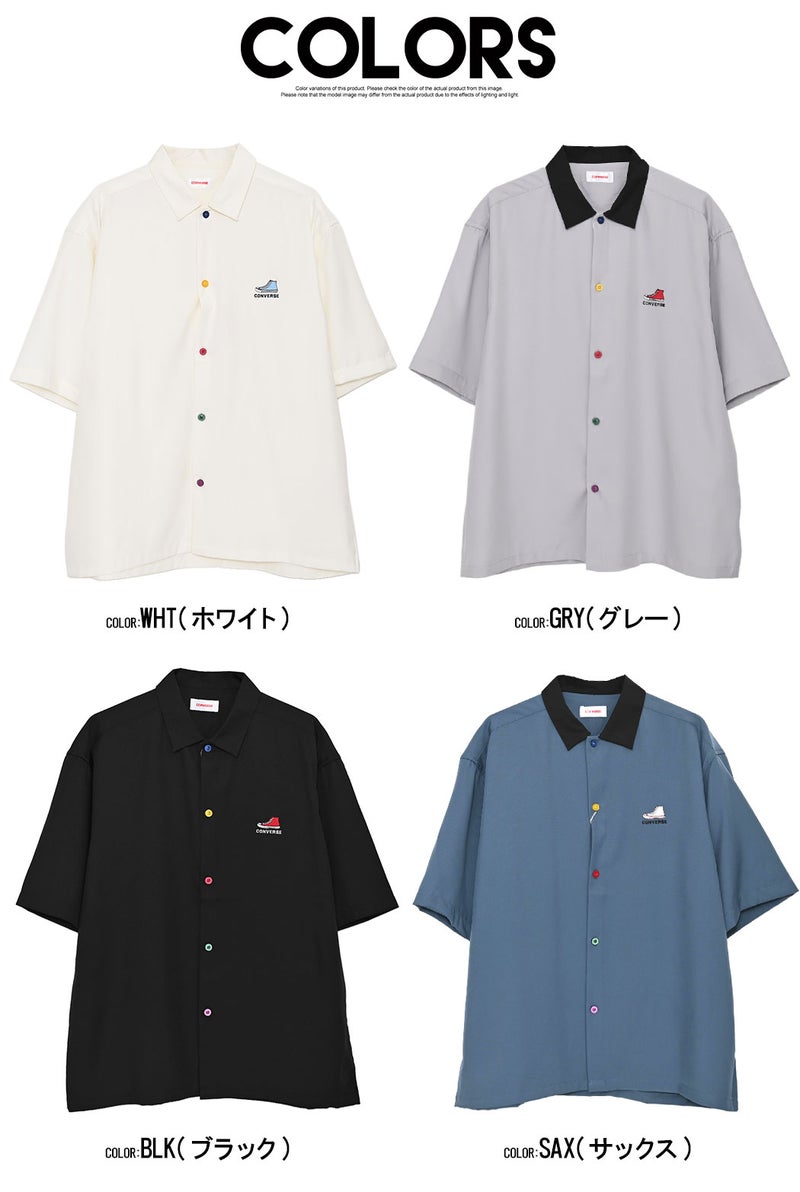 CONVERSEらしいベーシックなデザインながら、襟配色とカラフルボタンが大人の遊び心を感じさせる半袖シャツ。
